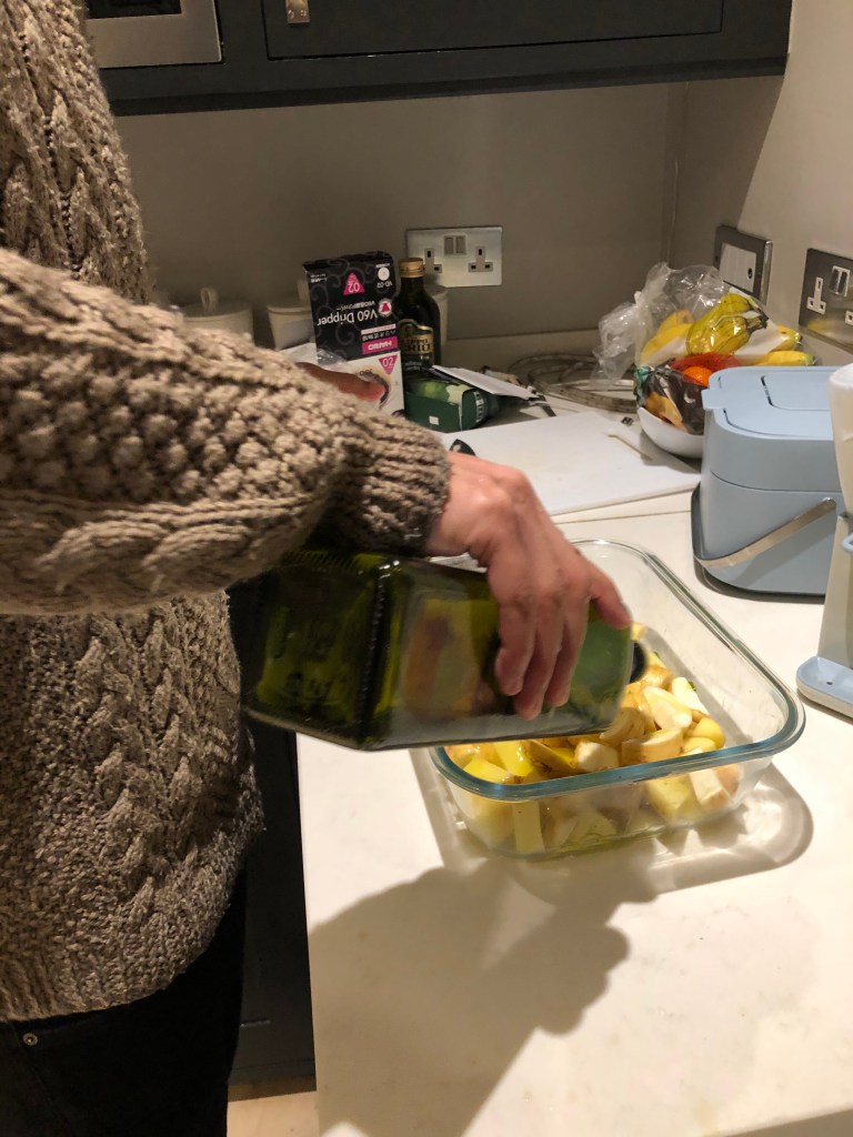The packages included such things as candles, mice and a coffee maker. Alex was forbidden by Leila to go on Amazon again. Amazon later implemented delayed delivery for all non-essential Prime items nationwide after viewing Alex’s purchase history. We then spent our afternoon working and we had a couple of 5 minutes breaks in the sitting room. At around 1900 Alex started making potatoes and parsnips and we started a grilled veg dinner. Alex claimed it would take exactly and hour and a half and Leila was very clear that he was wrong. Leila made Brussels sprouts, broccoli and mushrooms.