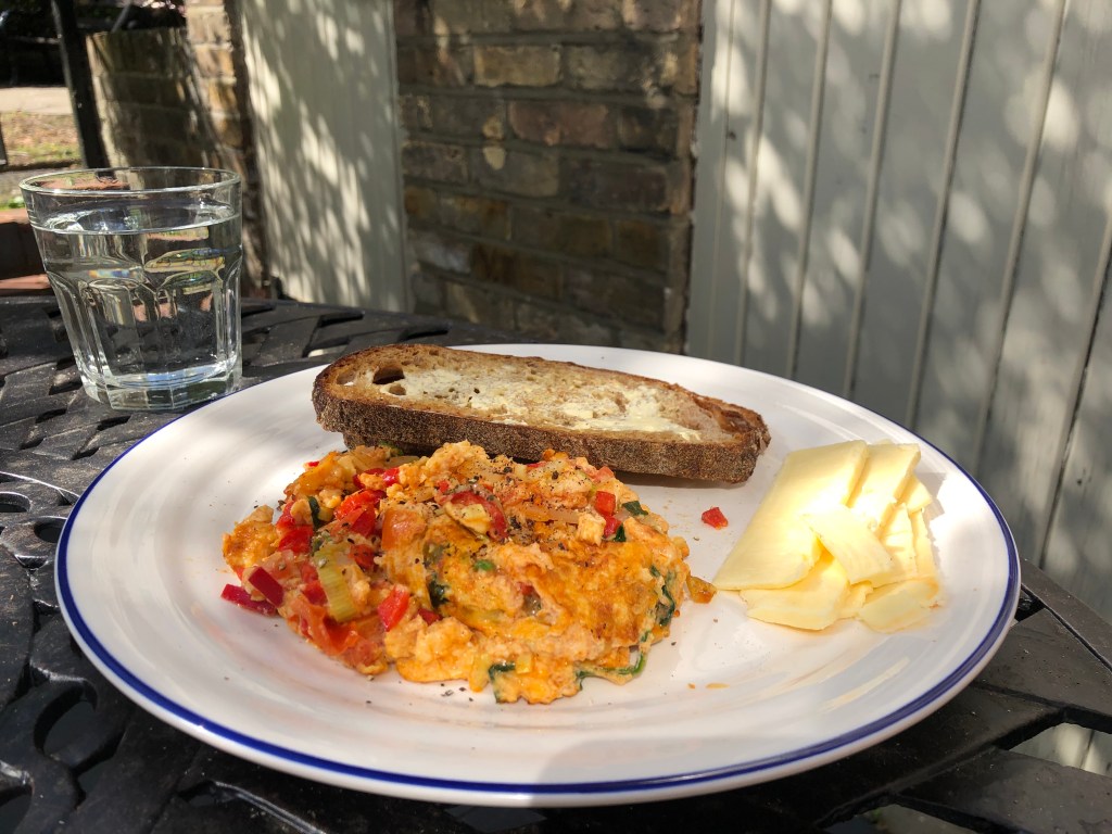 As Alex finished the chair, Leila made coffee and we read together in the sun. Alex read about Gully Foyle, a hyper-determined mechanic jaunting through space, and Leila read about post-colonialism, relationships and families in Nigeria. We stayed in the sun for quite a while, really enjoying the slow life and the feeling of weekend. Leila made an amazing omelette with peppers, chilli, spring onions, leeks, etc. We ate it in the sun and agreed that we should do this every weekend. Leila also called her Grandma in Dar Es Salaam because it was her 91st birthday, she was looking super chill in the sun and she had her neighbours round to celebrate with her.