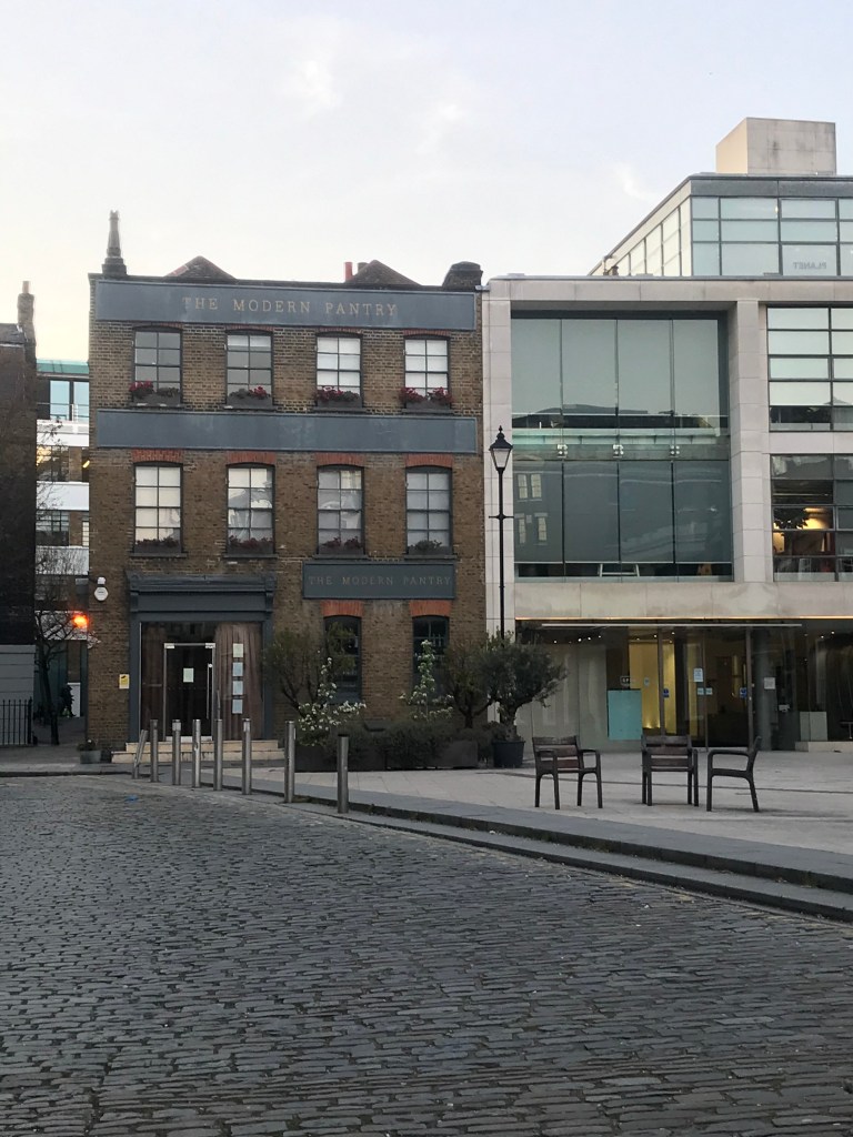 At about 5.30, Alex called his Grandma again and we decided to walk over to Barbican in order to fix her microwave and hoover. It was a really nice 45 minute walk, we found a really nice park on Leila’s typical walk to work and Leila bought some Kimchi from a Korean restaurant that was still open for take-away. We walked down Gray’s Inn Road and commented on the flat that we were thinking of getting and Leila got excited about Modern Pantry. Alex showed Leila around the places that him and his family go in Barbican and then he put on a new pack of gloves and went up to see his Grandma. The colour of the buildings had changed since he was little and he found it quite surreal. The microwave was easy but heavy, the hoover had always worked (it doesn’t turn on when plugged in). Alex had tea with his granny (breaking Leila’s rule) and sadly Waitrose was closed but Leila procured gin anyway. We cycled back, which is very un-Leila but she actually enjoyed it because the streets were empty, and picked up tonic from M&S in St Pancras.