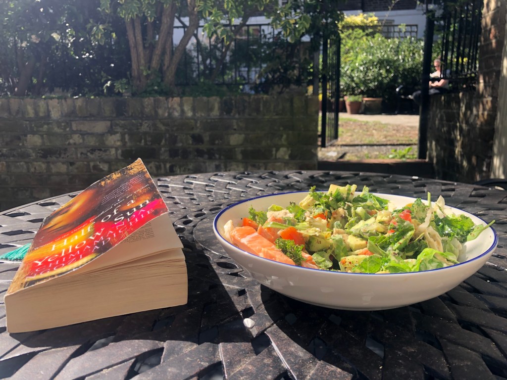 Leila made me get up because it was sunny and 20c, Leila was super excited for the sun. She was wearing a summer dress and she made super smooth coffee for us to sit out in the sun with. We reflected on how weekendy the weekend felt while we sat in the sun. Alex had finished off his book in the morning, and was happily distracted by writing emails and finishing admin tasks before joining the boys for D&D at 12. While he sat inside shouting into his computer, Leila made herself a salad and sat outside in the sun.