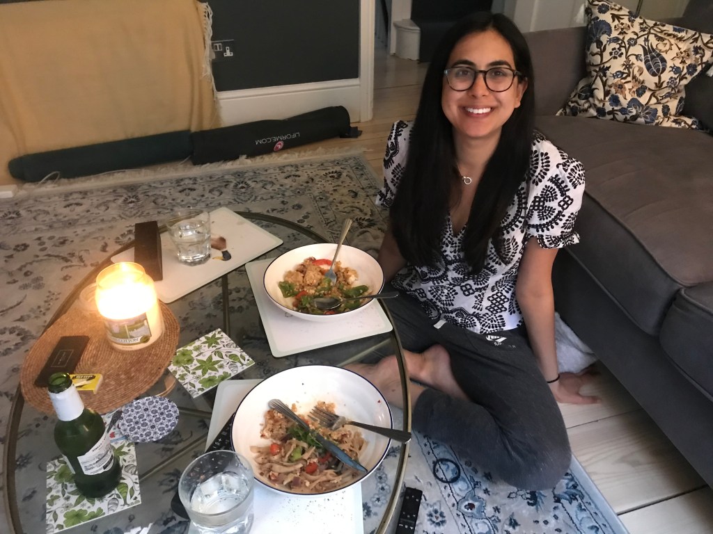When she finished, Alex was downstairs cooking ravioli with bacon and onion. It smelt and tasted so good and Leila stole 2 pieces of pasta (without bacon) as a snack. Alex then started lectures and was enjoying his Dev one until our WiFi died and both of us got thrown out of our respective Zoom calls multiple times and had to hotspot. After 1 hour of hotspotting, Leila’s phone overheating and no sign of WiFi, she decided to wash her hair and capitalise on the time. Meanwhile, Alex continued working via hotspot but took a break to brush Leila’s hair after she came out of the shower (not quite sure why that happened but it feels like a good skill for Alex to learn). The WiFi came back and Leila went back to work. At around 5pm Dominic Raab announced that the UK would extend lockdown by another 3 weeks. Unlike the first time lockdown was announced, this time Leila and Alex didn’t really need to discuss where they wanted to be, :).