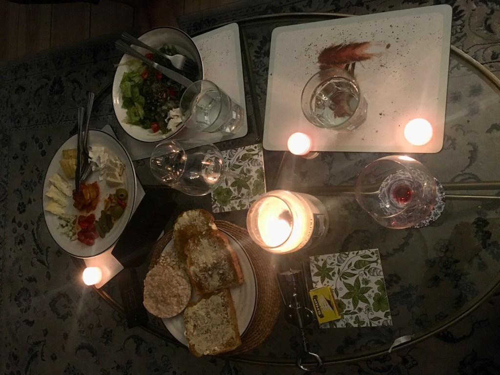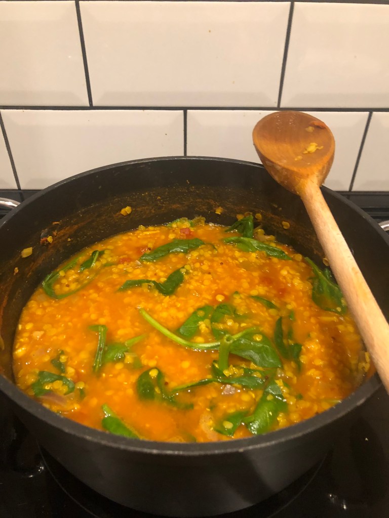 Leila finished work around 7.30pm, and was pretty unhappy after having worked for so long. Alex prepped a plate of cheeses, pickled goods and toast, and they had a charcuterie board (without meat) alongside a spicy daal that Leila had been brewing. She had called her grandma in Toronto to cook alongside her and really enjoyed talking to her. She also got tips on how to freeze coriander.