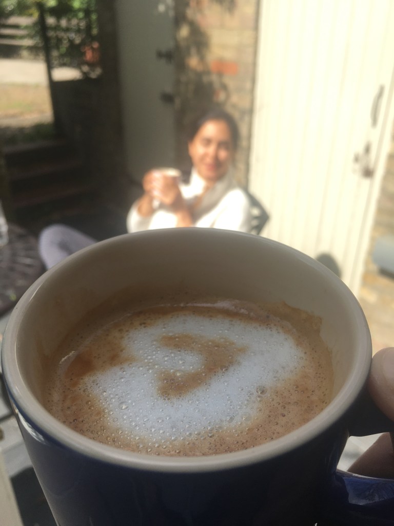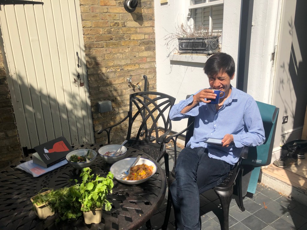 Alex slept in, but when he came down Leila had started reading on the sofa. They started planning for the day and had a disagreement over whether Alex wanted to help on the Ismaili work. They agreed that they both did want to be super intertwined though and Leila made him a coffee with a heart on it. They sat in the garden and drunk coffee and had some breakfast / lunch. Alex was upset that the mini herb garden (pictured) was dying despite his repeated watering. They read together for a good few hours before Alex joined unfiltered at 2.30 and Leila went to help Kay with the gardening.