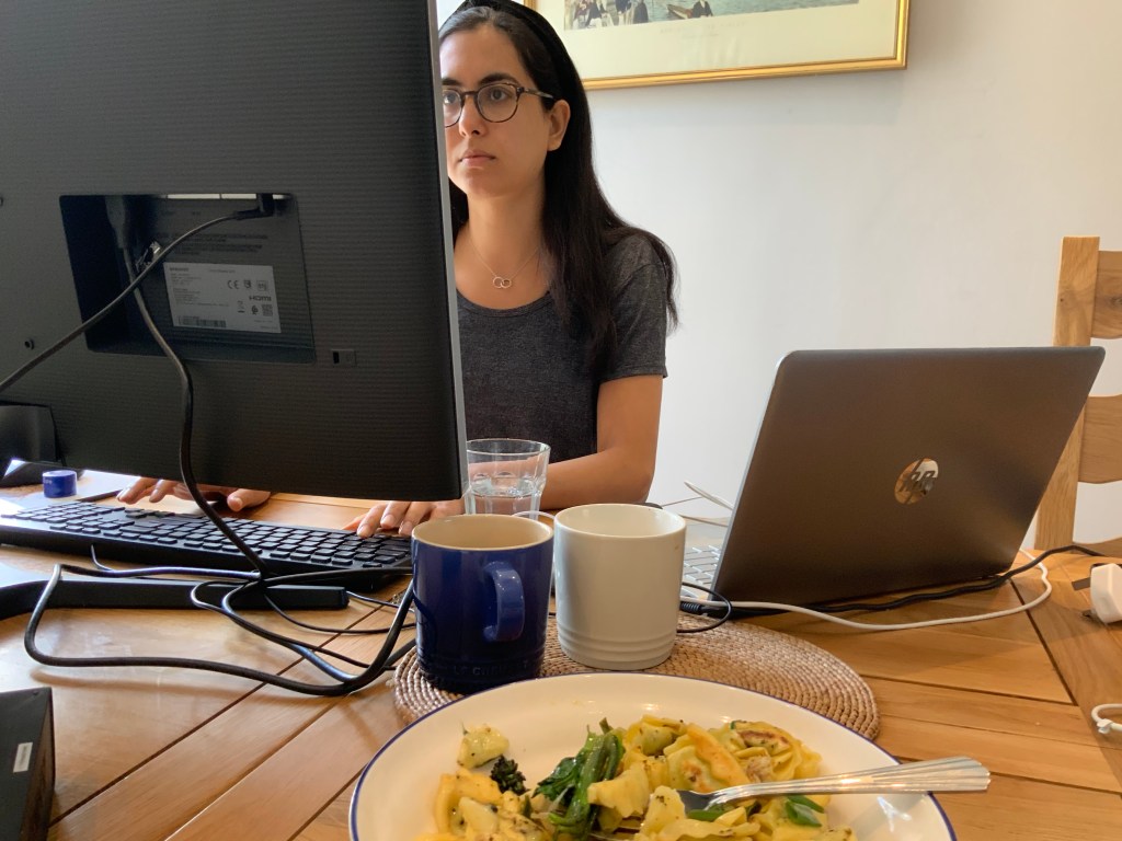 After lunch, Alex had his exam starting at 2pm. He was pretty chill about it and Leila had to remind him that the exam had started (and he still didn’t really stop playing games). After initial uncertainty over how long the exam would actually take, Alex kicked into gear after a bit, and moved onto using the big screen. He was quite content coding away, and thought the exam was surprisingly helpful at making him re-learn the material. He had 24 hours and it was all open book, which actually makes loads of sense in this context. Leila continued working the rest of the afternoon and took a break to do a barre class live on instagram with her new favourite instructor. Alex got his contract from the World Bank and was excited by the project – looking at subnational poverty data in Myanmar. Leila finished work after her call at 7pm; it was a pretty chilled day. She watched a little TV then came downstairs to cook a ramen. She danced to Roxanne in the kitchen whilst she cooked and Alex worked. She’d already played Roxanne 5 times by that point and had to stop herself from putting it on repeat because she knew she was verging on ruining the song for herself (see tomorrow’s blog post for how that went..)
