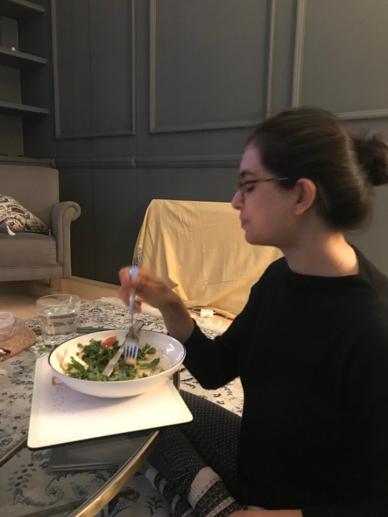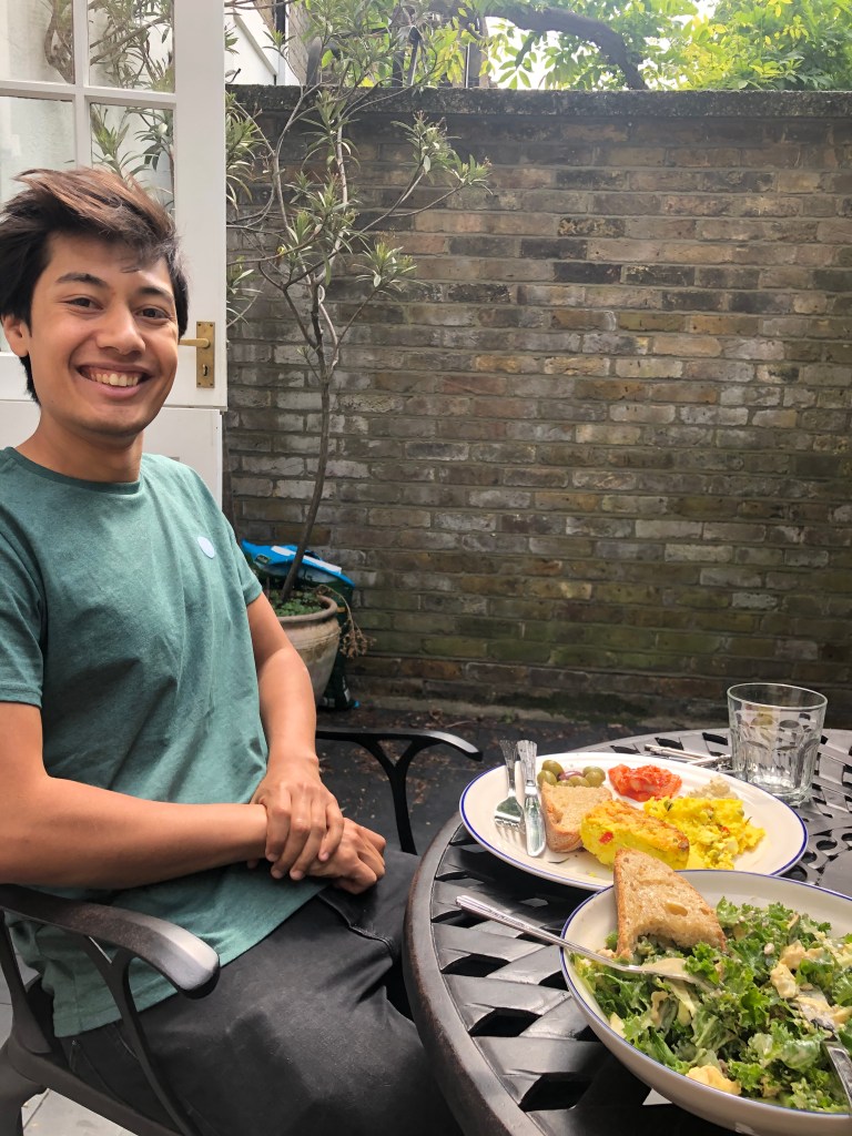 On return, they had a quick brunch made up of leftover potato cake and some of Bernard (sourdough) who was tasting fine on day 2 of existence. Then A joined D&D whilst L did some cleaning, Ismaili work, chatted to her family, did a barre class and did some house hunting. She also finished Never Have I Ever which was running in the background – she’s glad she didn’t focus all her attention on it. A’s game was good but a little chaotic and didn’t accomplish very much. He also did the hoovering at the same time and cleaned our top kitchen draw which had become full of junk. It now looks beautiful and L was v happy. After D&D, A joined L on the sofa and they continued looking at houses for a bit before watching the rest of Hitch. They finally finished it after starting 2 months earlier in NY.