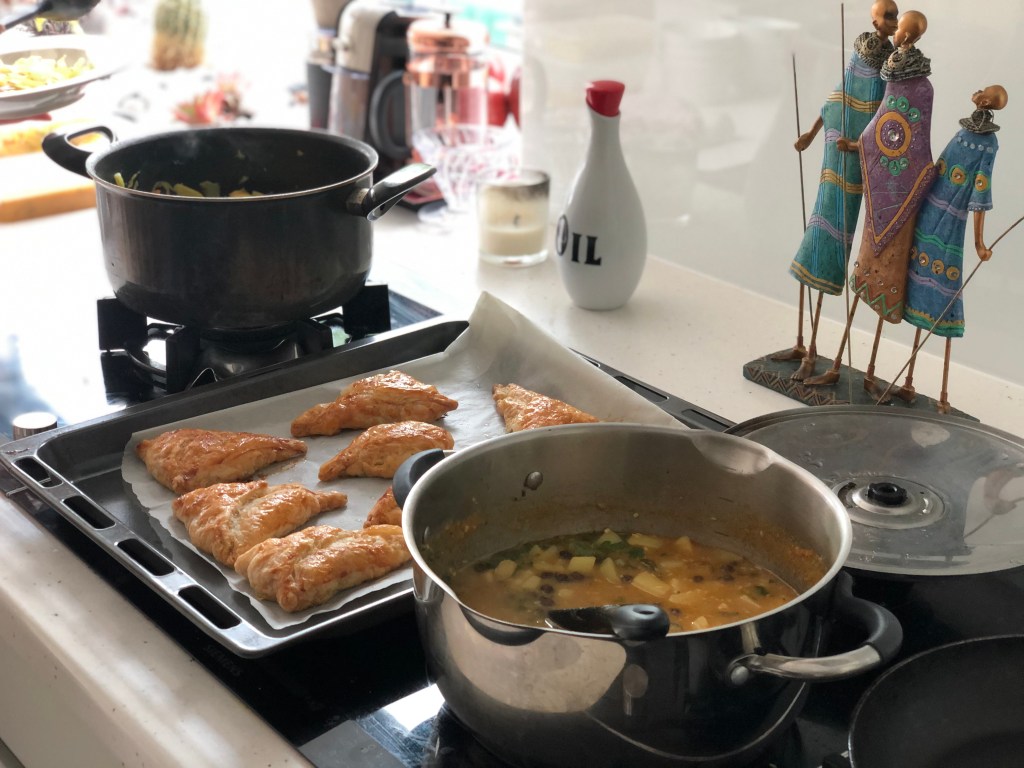 In the afternoon, Leila’s dad came back from his visit to a new site for a cemetery in Farnham and brought with him lots of Indian mangoes. They all sat outside in the garden together and chatted in the sun about lockdown, furloughing, how the family was etc. Then they went for a 1.5hour walk around the local farms and meadows which was beautiful. Some kids had created a teddy bear scavenger hunt in the woods. They came back in time to join their weekly JFR family call. Unfortunately Leila’s greats uncle isn’t doing very well but he seemed to perk up a lot on the call and they showed him a slideshow of pictures of himself with all the family through the years. Nevertheless, it was still pretty sad to see him that way. After the call, they had a family feast of a few Indian curries and sides with roti, some vegetable pastries mum had made plus salad and lots of fruit. Leila felt really comfortable being at home and she noticed and enjoyed how much she brought up Alex in her conversations with her family (in a good way). She chatted to her mum about relationships for a while whilst they walked in the woods.
