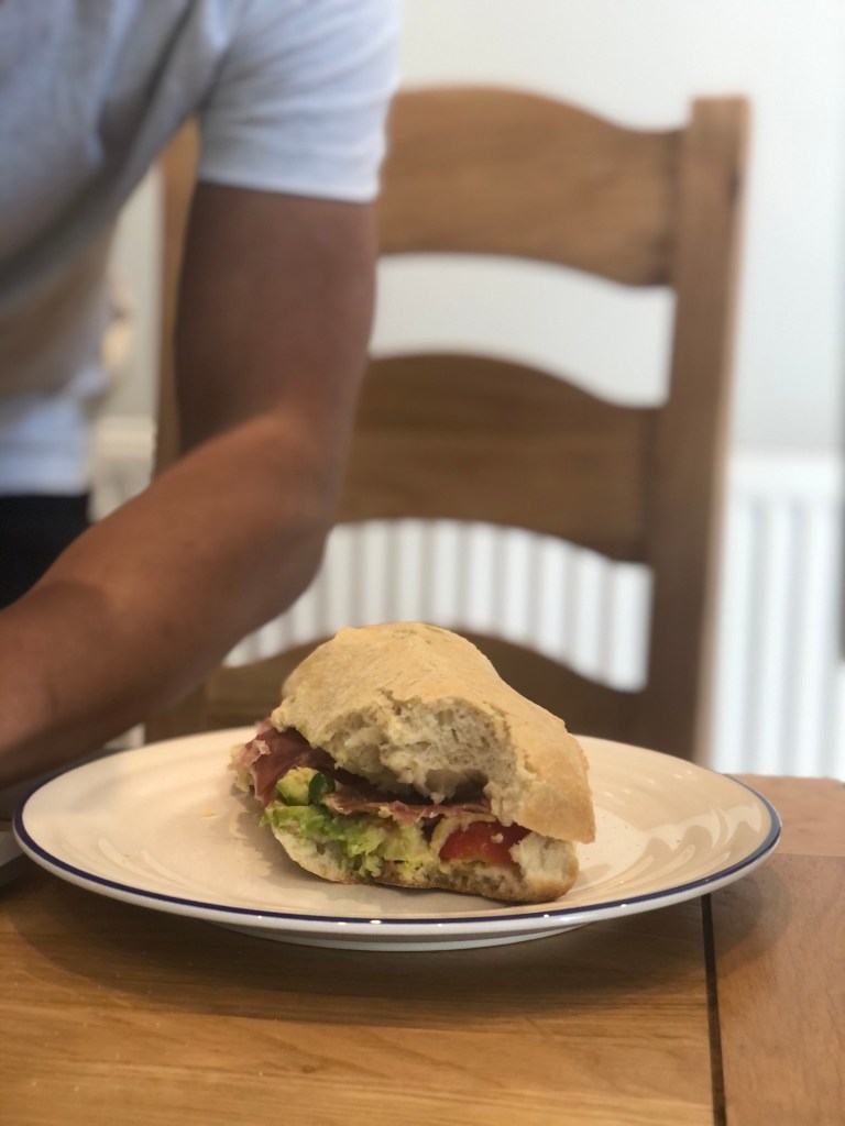 The alarm went off at 7am exactly. The Tesco’s delivery man was bang on time and arrived at 7.01am and L ran downstairs to answer the door. A followed and they both unloaded the 80 items of shopping, half asleep. L felt weird doing it without having brushed her teeth. They both then went back to relax in bed for a little more. L came down to start work whilst A spent a while playing football manager and then made himself coffee. He started working on setting metamask, a way of transferring electrum (L has no idea what she is typing right now). They worked through the morning and A made himself a great sandwich with ham, avo and tomatoes.