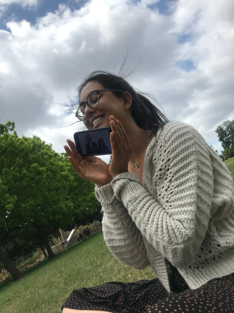 As it was Eid, L decided to make an Indian dish that her grandma usually makes and her mum never attempts. She now knows why. It’s called “Chila” and it’s a gram flour spicy pancake served with pickle. L couldn’t get the consistency right and it was much thicker than she hoped, but tasted ok. She later called her grandma and got some tips for next time. Meanwhile, in D&D land, things were swimmingly until a heated discussion about teleportation rules kicked off. A didn’t do a lot for most of the time and focused on emails. After D&D, they ate pizza (mainly A), lay outside in the garden and then A played games and called Umar to reconcile D&D issues. L joined her family Zoom call which was a lot of Eid celebrations, but she was sad to see that her great uncle had deteriorated in health and looked very weak, although perked up a little on the call. L joined a live yoga with Arabella and her old housemate, Senuri. The yoga was good but L could barely hear anything and so couldn’t really concentrate on it. A joined in half way through and they finished the class together holding yin poses, which they both struggled with. A then gave L a massage which made her feel great. L then showered and listened to Ludovico Einaudi followed by love poems read by Alex but written by old dead guys and girls (L wanted an ADV original). After her shower, she felt a little sad about her great uncle and called her mum to chat. A tidied stuff because he knew it would make L feel better. L cooked some leeks, onions and an egg for a light dinner. A was full so didn’t eat. He put on nice music and they looked at old photos together, and finished off the bottle of wine together. A was feeling very contemplative and they chatted about feeling small and whether other people think they have to (/ have the ability to) change the world. They headed to bed and listened to more Ludovico Einaudi and stayed up for a little longer.