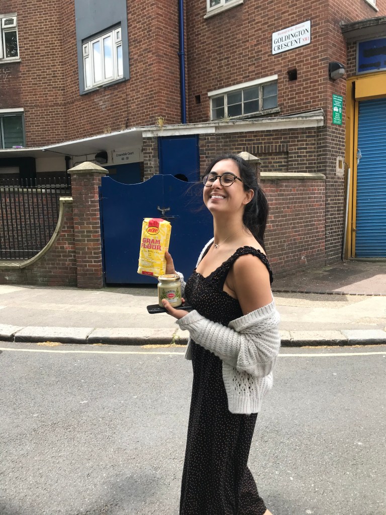 We woke up with a mission to go get coffee. Leila had already received a multitude of Eid messages overnight. Instagram had told Leila that Coffee Jar, a little coffee shop on Camden Parkway had opened up the day before for takeaway. Leila saw that Ottolenghi had commented on their instagram post with a love heart, and she knew immediately that she wanted to go there. They walked 17mins to the coffee shop and ordered 2 oat flat whites per usual. Alex bought a spinach and feta pastry from a Greek shop nearby. They didnt see Ottolenghi sadly but Alex did think he saw Alistair Darwood from St Pauls, but wasn’t sure. They headed to Regent’s Park to sip their coffee in the wind/sun and watched the 11am Ismaili TV broadcast there where Leila’s parents, along with other leadership, were giving Eid messages. Leila’s parents looked nice and delivered a message that seemed less forced than others. They then headed back via the Korean supermarket to pick up kimchi, sweet potatoes, fish sauce, barley water, beansprouts, noodles. They then picked up some tahini and gram flour from a little mediterranean store before running back home as A was late for the start of D&D.