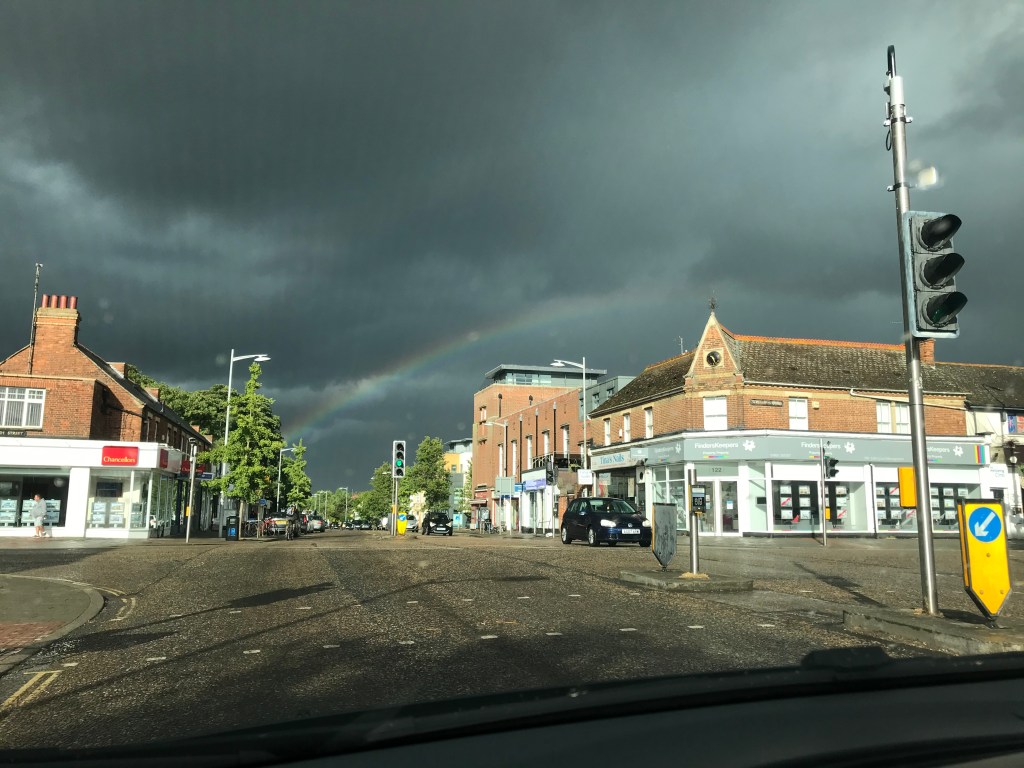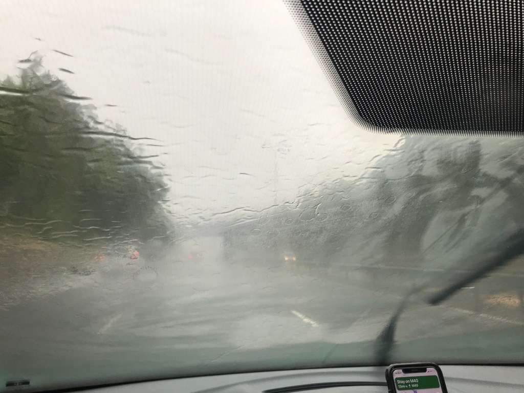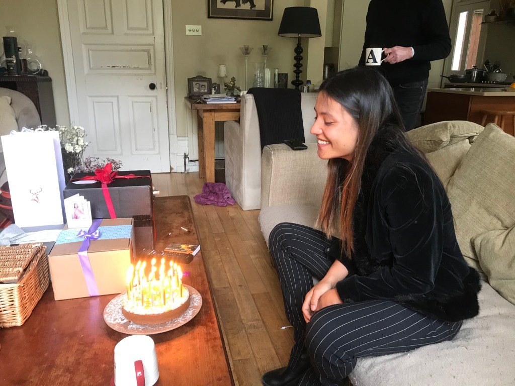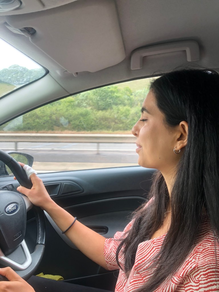 Alarm was set at 8.30am for a prompt departure for Chiswick at 10am. L and A both put on real clothes for the first time in a while, with A wearing his new linen white shirt which L made him iron. A made L a coffee and himself an avo toast and they packed the car with extra clothes and snacks for the drive. First stop: Chiswick, to celebrate Misha’s 24th birthday. She was wearing a really cool vintage jacket which L liked and they opened presents including the Liforme yoga mat from A, as well as other treats from the parents. It was raining so L and A sat on the sofa next to the open door. A’s mum had made a great orange and almond cake (without whisky inside, so parents had it separately instead). They left after an hour and headed to Gail’s on the high street to grab some stuff for Arabella’s family. Sadly, whilst waiting for the sourdough, L had a fight with the umbrella and it won and her finger was cut quite deeply. They rushed back to A’s house and his mum helped disinfect and bandage L’s finger and she was super grateful. L was having a pretty bad day (her stomach was still hurting) and as they got in the car to set off to Oxford, and the rain continued, she really felt like it was not her day.