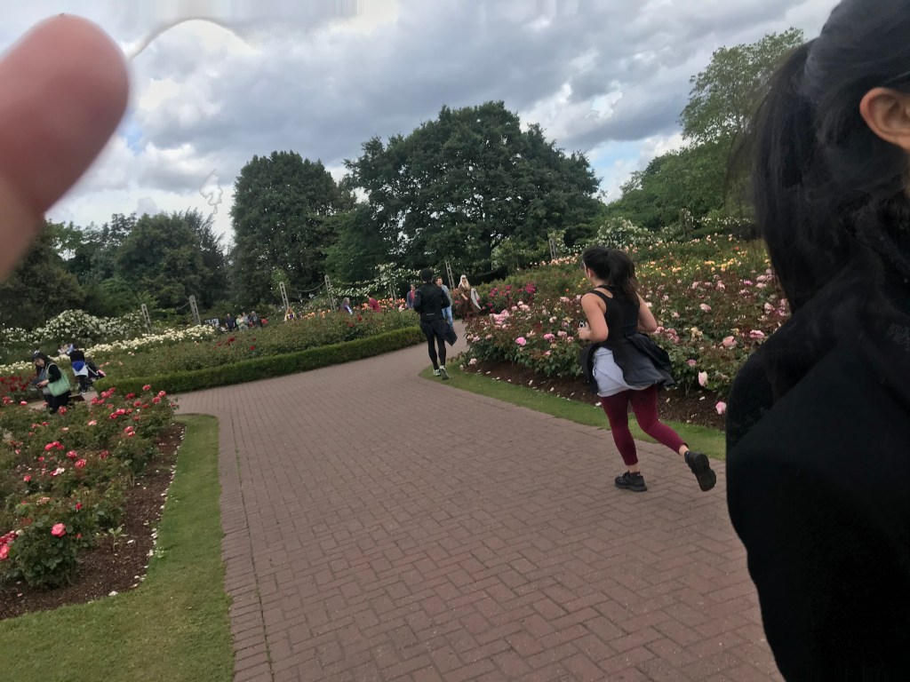 Then they headed to the rose garden, and L was amazed she hadn’t been there before. It was beaut and really relaxing (also there were lots more cute kids and L wished she was 7 again). They sat on the bench for a bit before walking back the long way through the park. Luckily, D&D was slightly delayed so they could walk back together.