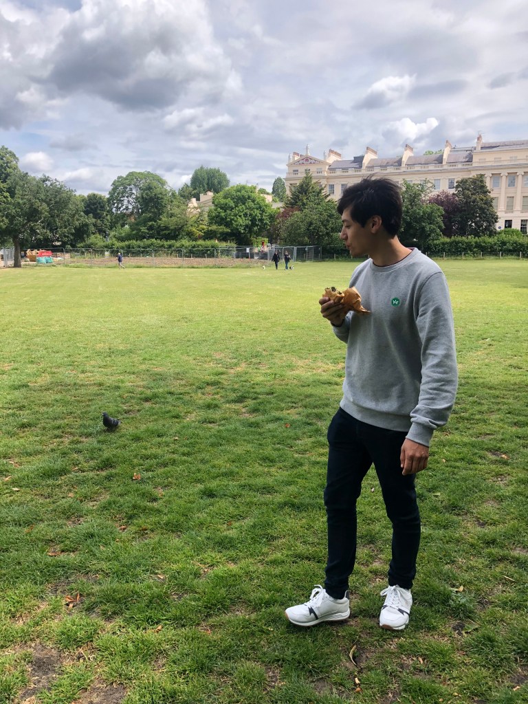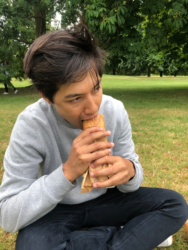 L woke up early having not slept that well…. again. She started reading her sci fi book quietly downstairs which was peaceful. A had a little lie in and came down feeling fresh at 10.30am. They got dressed and headed for their usual Sunday walk – Korean supermarket, Greek pastry place, Wholefoods for papaya, and Coffee Jar. A bought 2 pastries including his fave ingredients – pastry, potato, cheese, spinach. They saw a cute baby and cool mum wearing Veja’s. This became a theme, and as they walked through the park, they spotted tonnes of cute babies and families. They found a spot to sit down, half in the shade for A because his eyes were being weird and half in the for L. Sadly, there were 2 pigeons encircling and they did not leave despite multiple air kicks by A who was trying to protect L. Lots of passers by were confused and looked slightly anxious watching him get angry at the poor pigeons. They lost the battle, and moved a little further away and watched a couple do some martial arts. L decided she wouldn’t mind living in Berlin for a bit. A was confused.