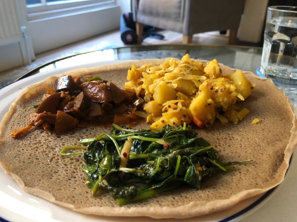 L didn’t do much in the afternoon, her work was piling up and she was getting frustrated and also got chased on some Ismaili work she hadn’t done (totally non urgent). She decided to cook an Ethiopian curry to eat with the Injera. Meanwhile, at 5pm, A had a chat with Clement and talked about how life has been in Boston and on the difference in perception of Equality in France and America. L worked until 7pm and had reached maximum frustration levels, and wondered whether it was lack of sleep or something else. She shut her laptop and phone down, and did a little cleaning with A. The highlight was moving the suitcases up from the hallway to the loft. Then they watched a little One Tree Hill and A did some Togo work, before eating dinner. The Ethiopian food was nice and had improved since Friday’s attempt. Leila added peanut butter and honey to her leftover Injera for dessert and it was yummy. Afterwards, they watched a bit more OTH and A declared that he was officially engaged and wanted to continue watching with L. She was super happy but had enough of TV so went upstairs to read whilst A finished some more Togo work. They headed to bed in a different bed for a change and A did a Headspace meditation which L dozed off in.