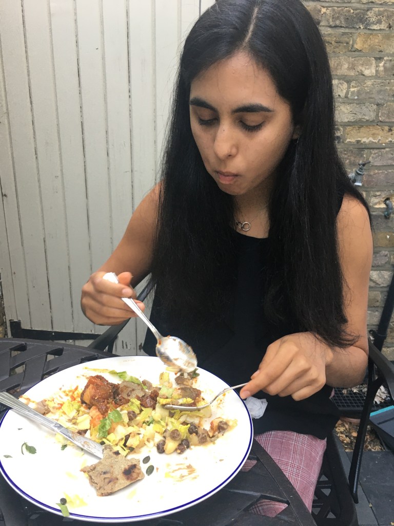 L headed out on a walk in which she also found A some ‘vegetarian chicken wings’ which turned out to be cauliflower but were still delicious, they sat outside and ate roti, veggie chicken wings and curry. It was excellent