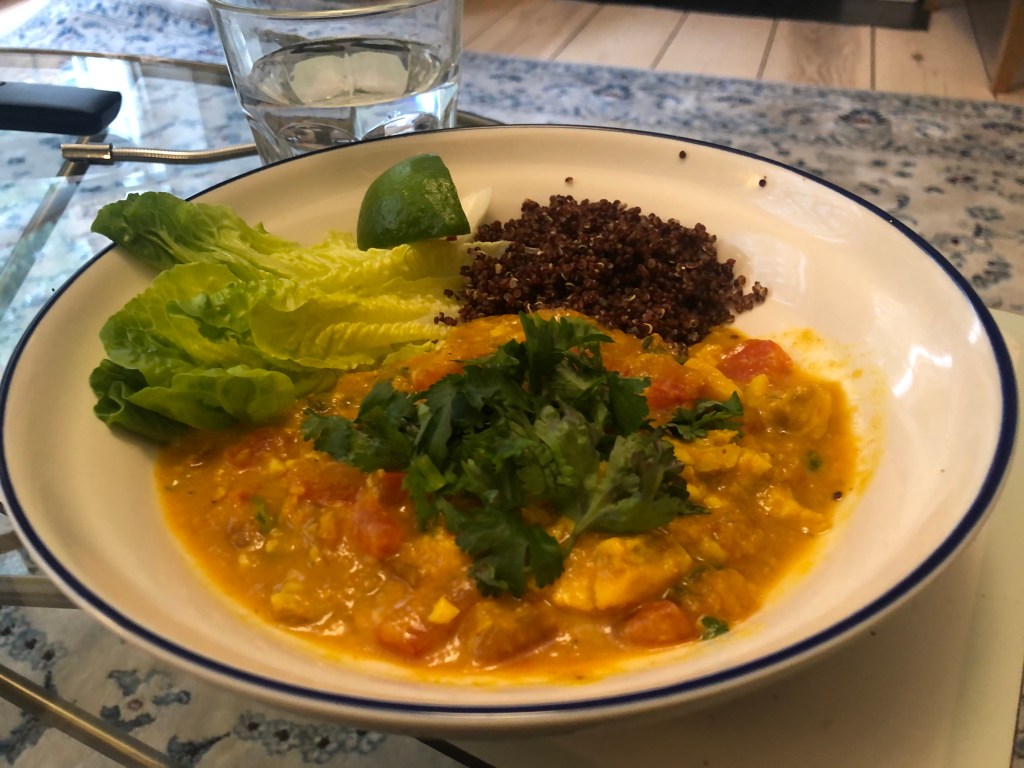 Alex made lots of sausages for lunch and was working on WB stuff. In the afternoon, he went for a walk to chat to Ashan and Pankhuri and then went upstairs to chat to Ed Balls and George Osborne who were doing a COVID G20 role play and A was Xi Jingping. It was super interesting, especially hearing their experiences of the real world importances of administrative / informal deadlines (e.g. not giving people food so they reach a conclusion and having the agreement already made before the people entire the room). He also enjoyed that they were bantering between them despite being enemies previously. Meanwhile, L started cooking a Burmese tomato fish curry with the ingredients she picked up earlier – lemongrass, tamarind, shrimp paste, cod. She really enjoyed cooking it and eating it, and said it was better than Thai curries. They finished it all off and tried to watch the first Premier League match with no spectators which was Arsenal v Man City but Sky Go didn’t but Alex found a stream within 1min. At 9pm, A joined a call with Sam and Roukaya and they chatted about Sam’s travels around the US and the BLM protests and all the people she was meeting. Meanwhile L got into bed and read her book for ages and she felt really zen. When A came back, he finished off the match in bed and watched the analysis whilst L dozed off.