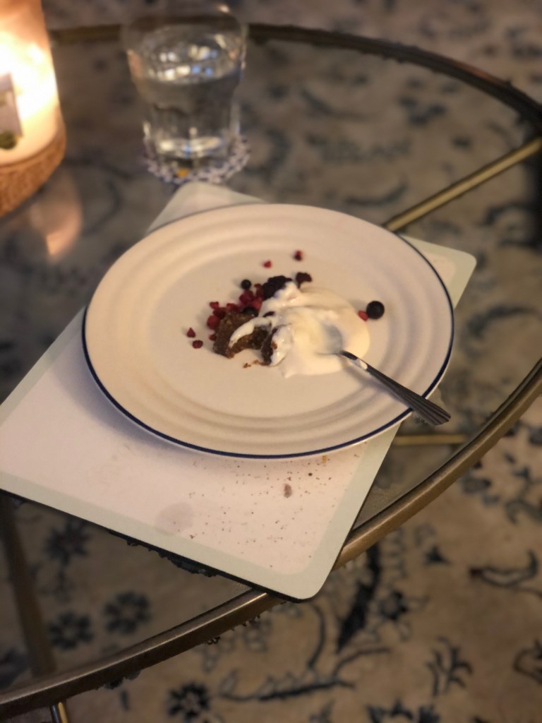 They then went to Lidl to pick up food and divided and conquered which was successful, except A left L behind in the store and headed home without her by mistake (she was right behind him). L joined a call with Areef who was showing her his personal strategy powerpoint whilst A made a beautiful dinner of haddock and veg cooked in the oven, with a side of soda bread. He allowed L to have a little dessert (pictured) which was one spoon of yoghurt and some frozen fruit. A convinced L to take the morning off the next day and start work at 12.30 and so she emailed the team, and is thankful to A for convincing her because it was the right move. Then they finished off The Theory of Everything and headed to bed.