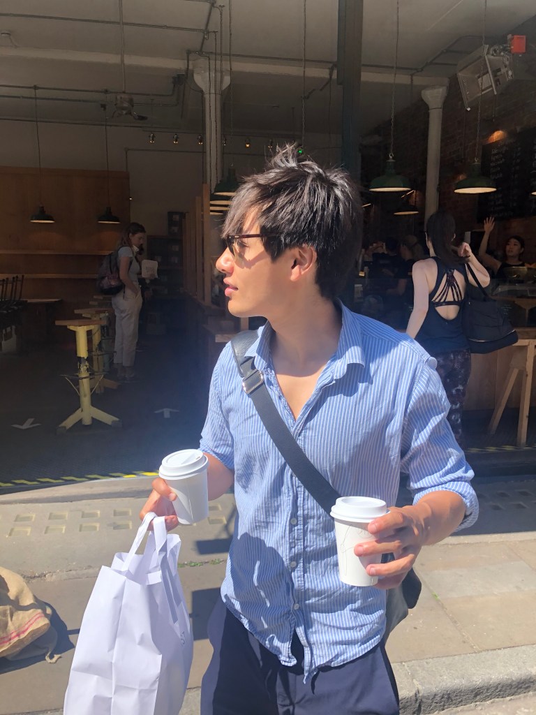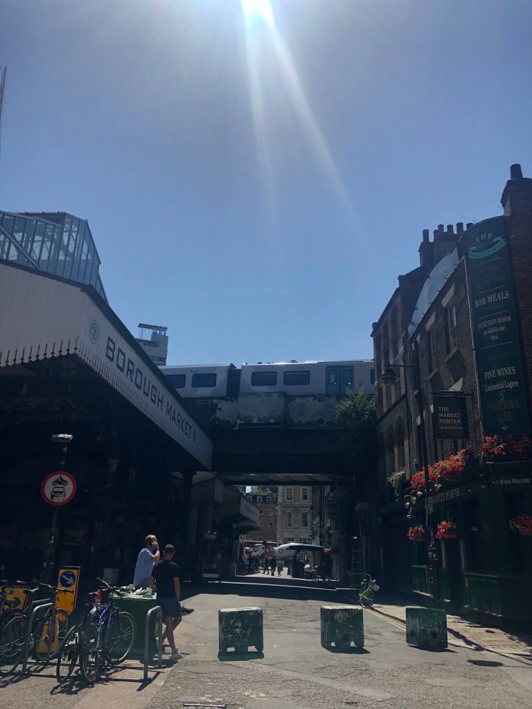 Leila had decided to take the morning off, and was excited about her day. Alex didn’t sleep that well so Leila let him lie in until 10am. He panicked a bit because they had said they’d leave earlier and had the quickest shower in the world, so they could set off at 10.15am. They grabbed Boris bikes and it was super sunny and felt like the weekend. Their first stop was Catalyst where they saw Alex and other barista (forgot name) and bought 2 bags of coffee. Then they headed towards Borough Market… second time in 3 days. When they arrived, they headed straight for Monmouth coffee, they were in dire need after a longer than expected journey over. They picked up two OFWs and 250g of beans (they’d missed out on picking them up last time), they headed to the church and sat on the steps and drank the coffees. They chatted about how Mish ended up in AWS (and she’d helpfully put A in touch with her mentor) and slowly drank through their coffees.