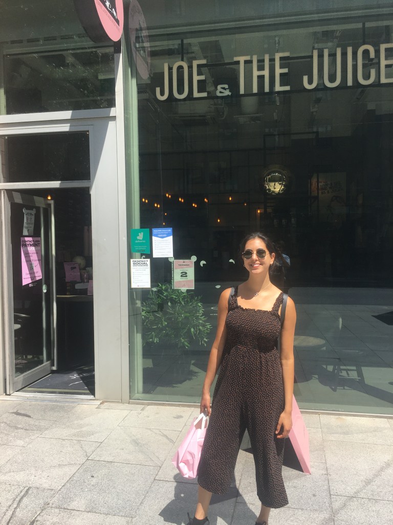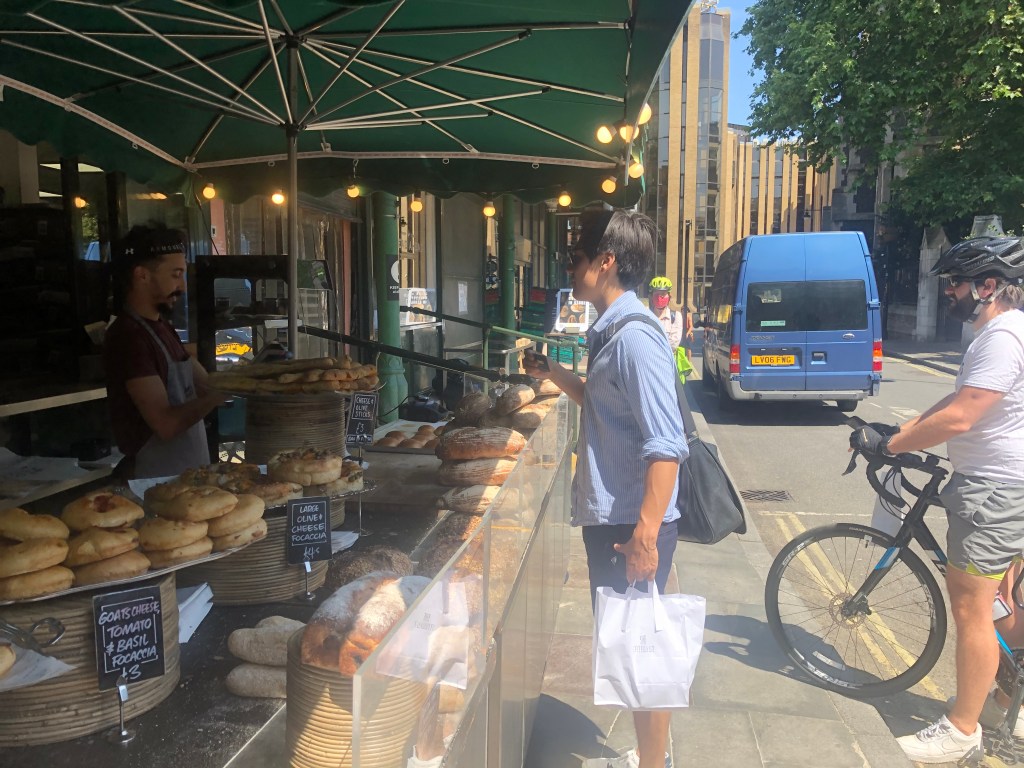They headed to bread ahead for first pickup of snacks, and A got a mushroom croissant and a large cheesy focaccia. They then had trouble finding something for L as 26 grains were not selling porridge, they ended up picking up a tuna sandwich from Joe and the Juice (after long deliberation) as well as some snacks from M&S. They headed up to the flat and L joined her Women’s Career Strategic Initiative (WCSI) call. She was a bit late but it was all a webinar so they sat outside in the sun and ate their food during it. The sandwich was a bit of a fail as it had dill in it (L’s enemy), so A ate that as well and L picked up some quick food from Leon. She bumped into her friend from work in Leon with her boyfriend, who had just left GS and moved into the yellow building opposite A’s flat. This is now the fourth day in a row L has randomly bumped into people in the streets of London and she finds it bizarre but nice.