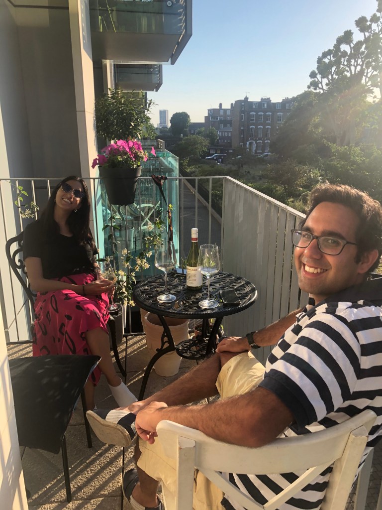 L’s bike ride was a bit of a fail as she realized there were no bike stations near Rumi’s place so she ended up stopping after 10mins and then walking the rest of the way (in hindsight, this was a good thing because she could watch a bit of the football on SkyGo and she saw the second goal). When she arrived Meera and Rumi were already on the balcony and they had some nice white wine and chatted in the sun, it was almost 30 degrees at 7pm and L was melting. They chatted about boyfriends, diversity /BLM and anxiety during lockdown. They left at 8,15 as Rumi’s girlfriend was arriving but L and Meera walked together for a bit after and continued chatting which she really enjoyed. She then cycled back home and ate the paneer straight away. A was deep in work mode and a little frustrated at his lack of motivation (even though L disagrees). L apologised for a comment about washing up that was totally unnecessary. He continued working whilst L showered and they headed to bed early where they both read next to each other for a while. A was quieter than usual and L was worried but glad she was next to him. He fell asleep super quickly.