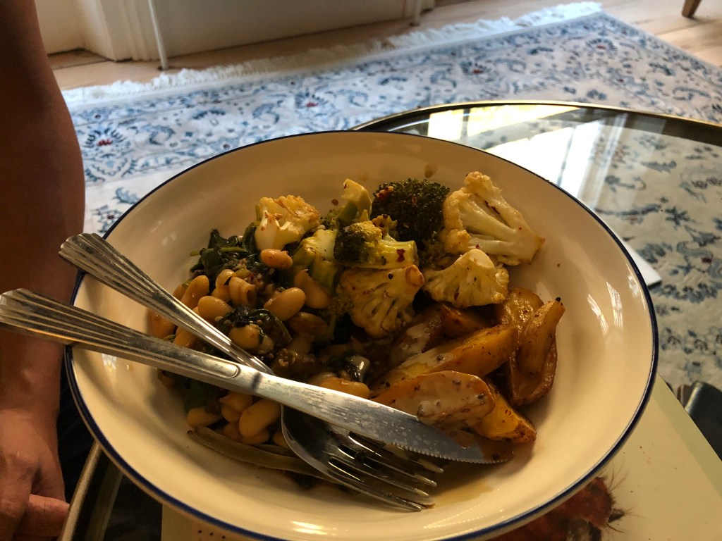 Then they went back home and L cooked roasted cauliflower and broccoli and miso beans with spinach. Then L was feeling quite overwhelmed with social contact and wanted some time to herself so she watched 1 episode of OTH whilst A watched MOTD upstairs and then she headed to bed to read. A joined her and continued doing a bit of Python/gaming and L fell asleep next time. He also confirmed he was deferring for the year and, again, chose not to tell L until after.