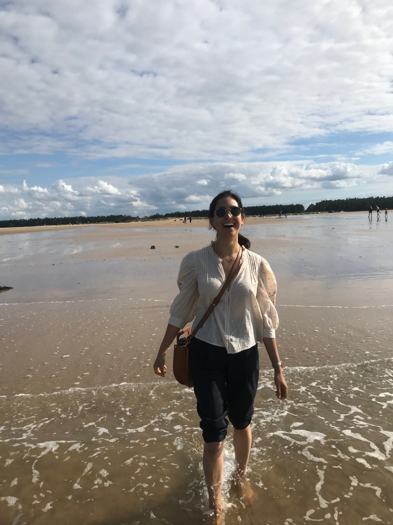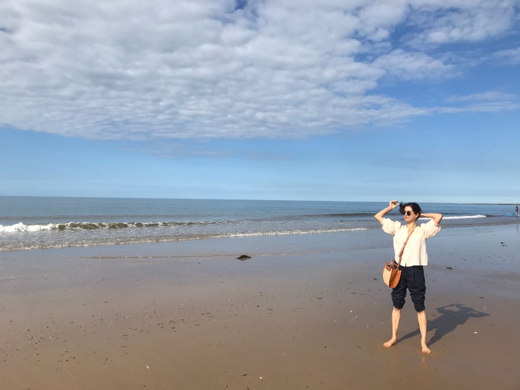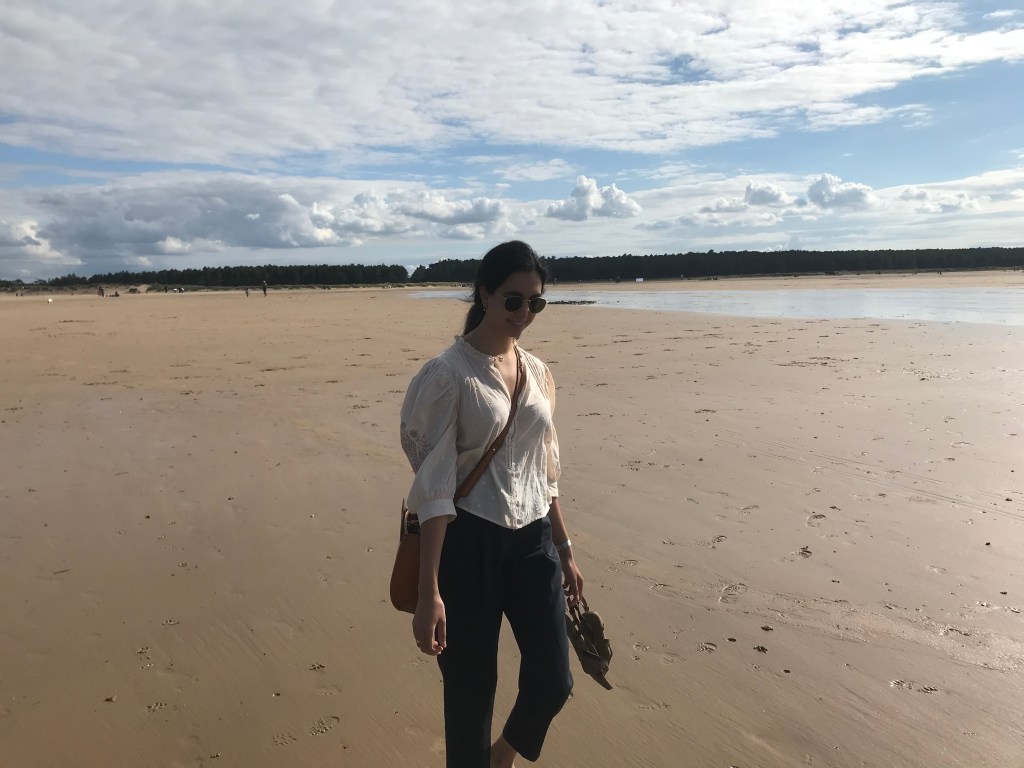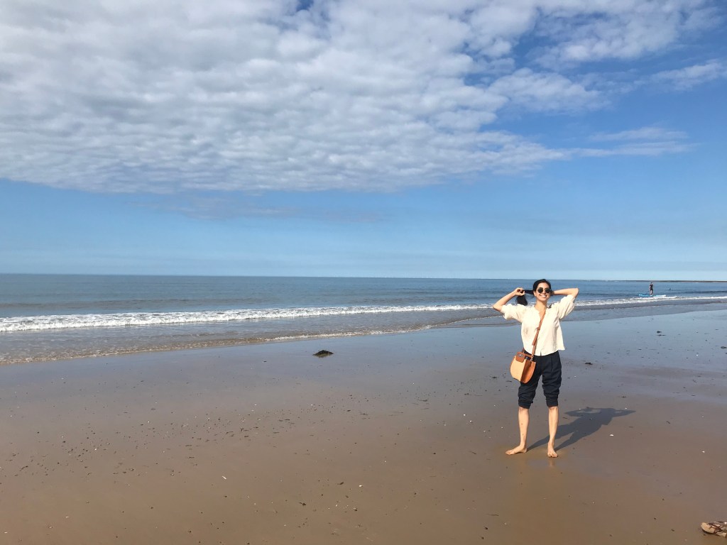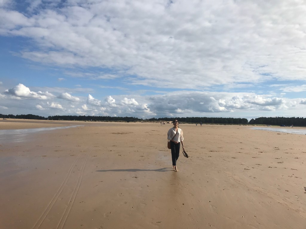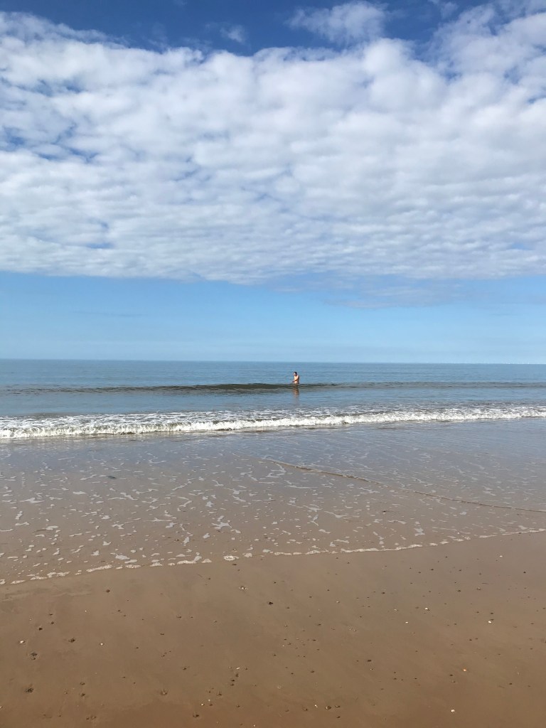 They then drove to Holkham beach and were given a car parking ticket by a nice family. They walked quite a long way from the car park to the sea and L had never been on such a quiet and relaxing beach in the UK. It was 5.30 and people had started leaving but the sun was still out and they walked along barefoot (L was poorly dressed). A jumped in the sea and swam along the coast whilst L walked and thought it was the most relaxed she’d been in a long time. They then headed back to the car and made their way home.