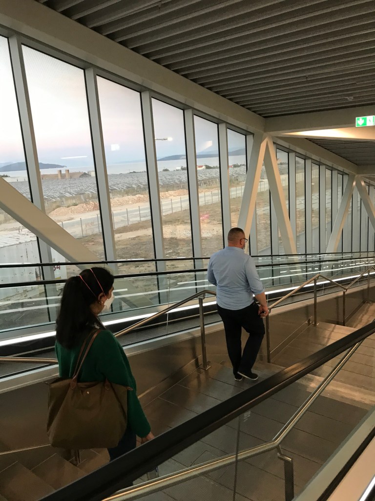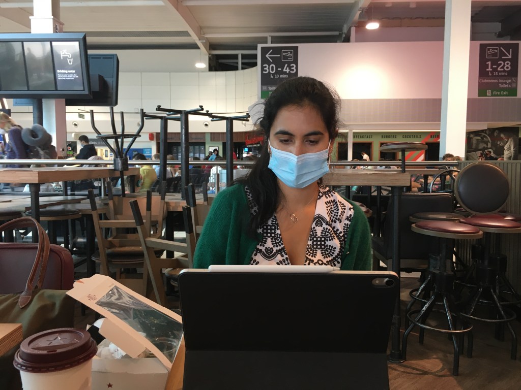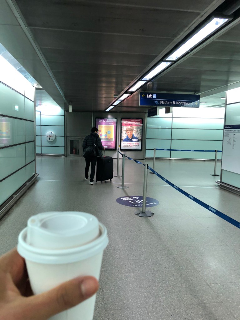 Leila woke up and felt like she hadn’t slept. She had a very productive first hour of work where she sent out her handover and finished stuff off. Then she woke A up to tell him she was going out for coffee and asked if he wanted to come. He chose the takeaway option and she headed off to Caravan and sat outside with a real mug and nice coffee. Service was slow but that’s normal in a COVID world. A did a bit of work and had a chill. L wrapped up work and tried to finish packing and cleaning but was getting a bit stressed. A made a huge lunch of all the food in the fridge, including the tofu and dhokra which L was sad about but it was a misunderstanding. She had a beautiful bowl of muesli instead. They packed up the house and headed to Luton a cool 4 four hours ahead of the flight. They ran around St Pancras to pick up tickets, get a decaf 5 mins before the train and to make sure A’s card worked. A is weirdly more nervous about train times than L.