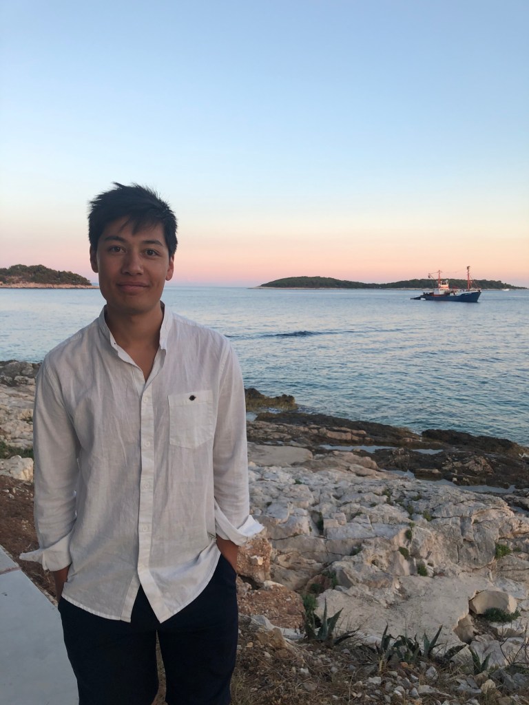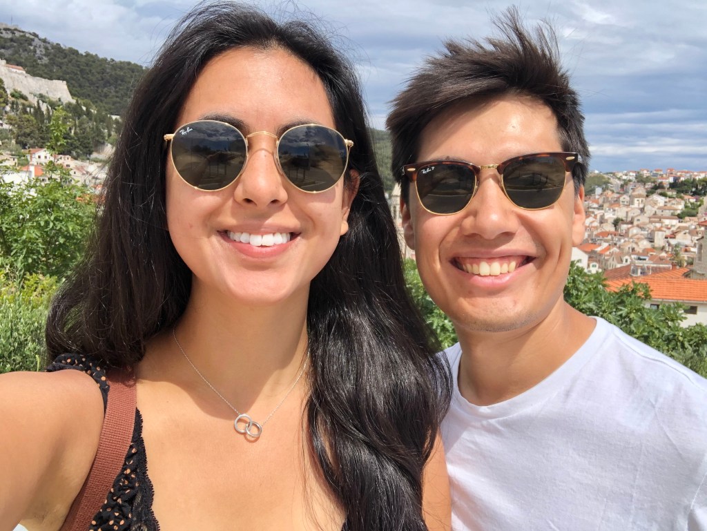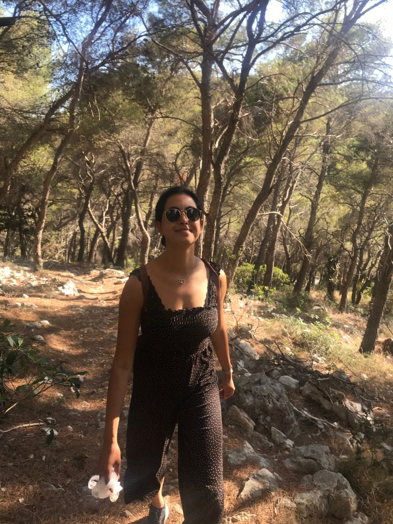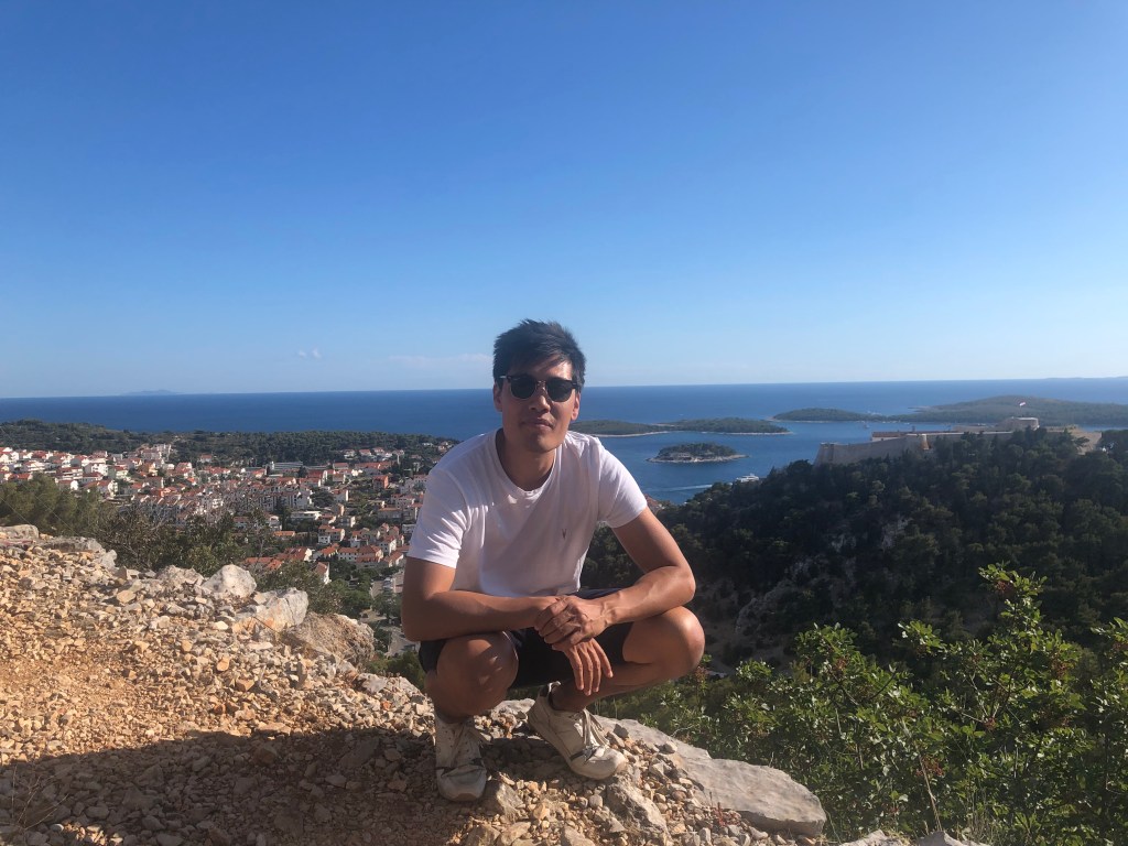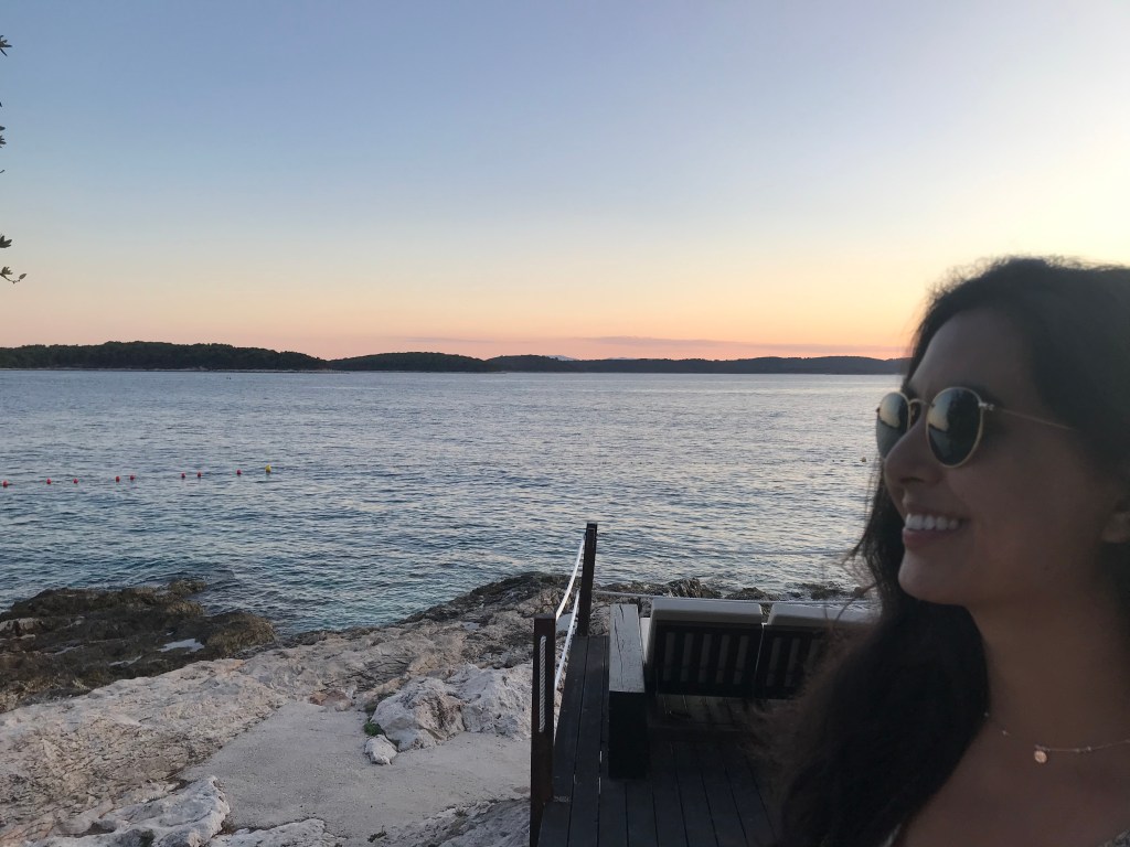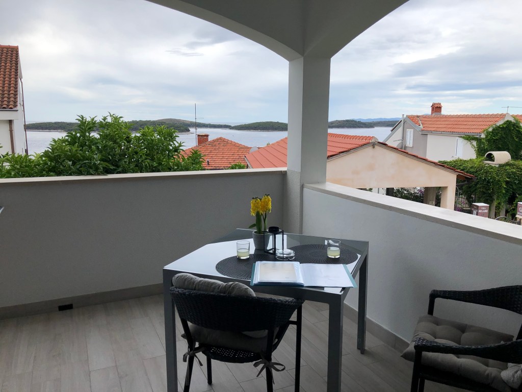 They loved the sardines, another fish to add to L’s new foods list, and then headed for a long hike up the mountain to the Napoleon fort. On the way we chatted about Marxism again and whether their end goal is a Utopia and it’s relation with the state. They only passed 2 girls on the entire route and ended up really high up after 40 minutes with a beautiful view of Hvar and the Pakleni islands. They chilled on the bench for a bit then headed back, which L found way harder and fell over (minor) and chatted about gender and sexuality. They walked back to the apartment through old town and freshened up before heading out for dinner walking along the seafront wearing shirt and dress. They arrived at a seafood restaurant recommended by their host where the guys that own it go out and catch the fish and octopus with their hands that day. It was busy but not touristy and they sat on the quiet street. There were only 6 things on the menu of which 4 had octopus. L ordered a seafood stew which ended up being a giant seabass not carved with potatoes and A had octopus risotto with chips on the side (despite the waitress telling them they had too much potato). They both had nice wine and made a list of the things they’d learned to love from each other e.g. seafood. Food was beautiful and they licked the plates clean. Then they headed to a bar and sat on the steps seats and listened to live music. A had a negroni and L a grapefruit G&T. They had to stop being cutesy because the waitress kept appearing and they felt awkward. They wandered home and headed to bed and slept late.
