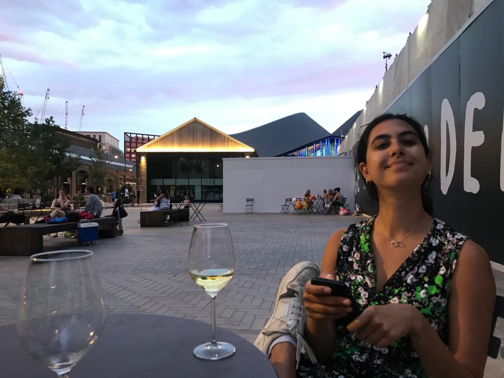 They went into Coal Drops Yard bringing a bottle of wine as a bit of an end-of-week celebration but when they arrived it was absolutely heaving, with people everywhere and really did not feel like their vibe. They spent a while trying to find Arabella a gift and ended up with wine, cured meat, pasta and flatbread from Lina Stores.