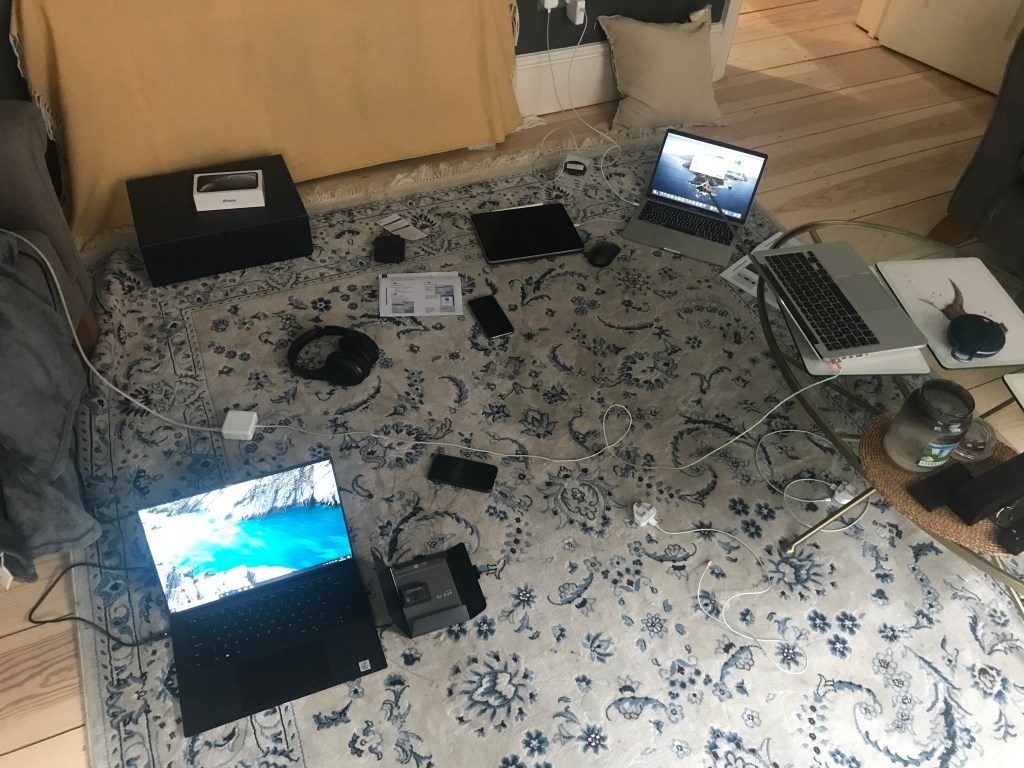 Alex spent a large portion of the day setting up all his new devices (new Dell laptop, McKinsey laptop and McKinsey phone). The living room looked like hot tech mess and L threatened not to speak to A again if the end result was 3 laptops (2 macbooks and a pc), 3 phones and a tablet. L worked downstairs whilst A focused on his devices.