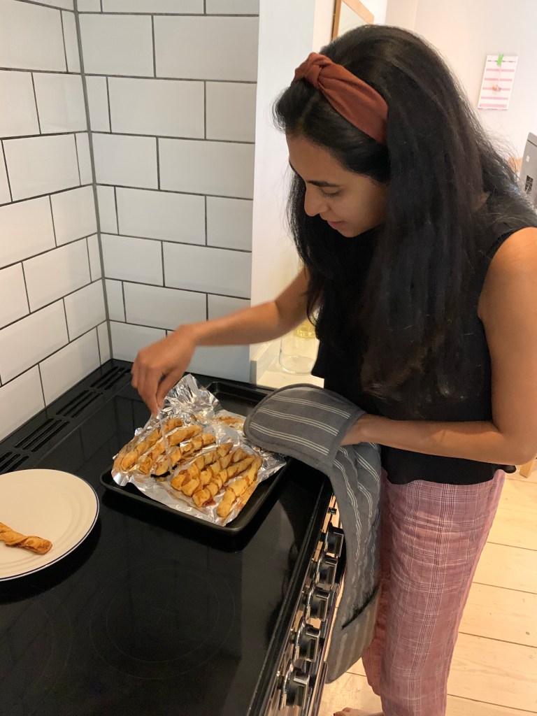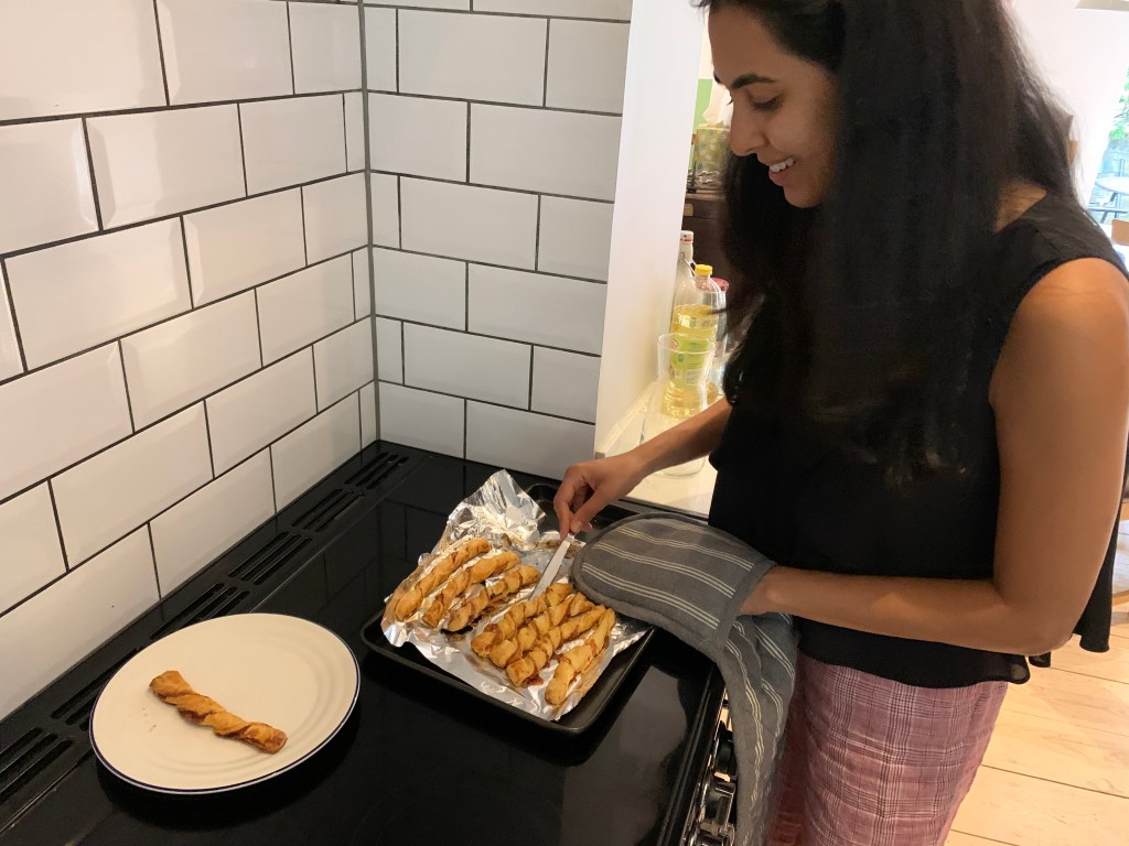 L had a bad night’s sleep in the loft so ended up in her bedroom. She had a diversity call at 9am and then worked through her emails in the morning and figured out her plan for the week. It was already feeling a bit overwhelming to be back in the office. A came down and they headed to Granger & Co for 50% off coffee and worked there for a bit before L tried to get them into Dishoom for breakfast (there was a 45 min wait). They then both worked through the morning and L started making lunch of sweet potatoes but then her eyebrow threading lady called her and said she could come home but needed picking up from the station and dropping. L ran off to see her and it was cute. She was happy to give her the business as she’s a sweet old lady who has been quite unwell. She had her eyebrows done and A had finished off making lunch which they ate together outside. A had a catch up with Chris, Hannah and Sam and Chris had got engaged! Meanwhile, in an attempt to use the remaining shortcrust that had been in the fridge for way too long, L made some cheese and Tabasco twist pastries for A and a decaf coffee. They both worked right up until 7pm and A had a million things to finish off.
