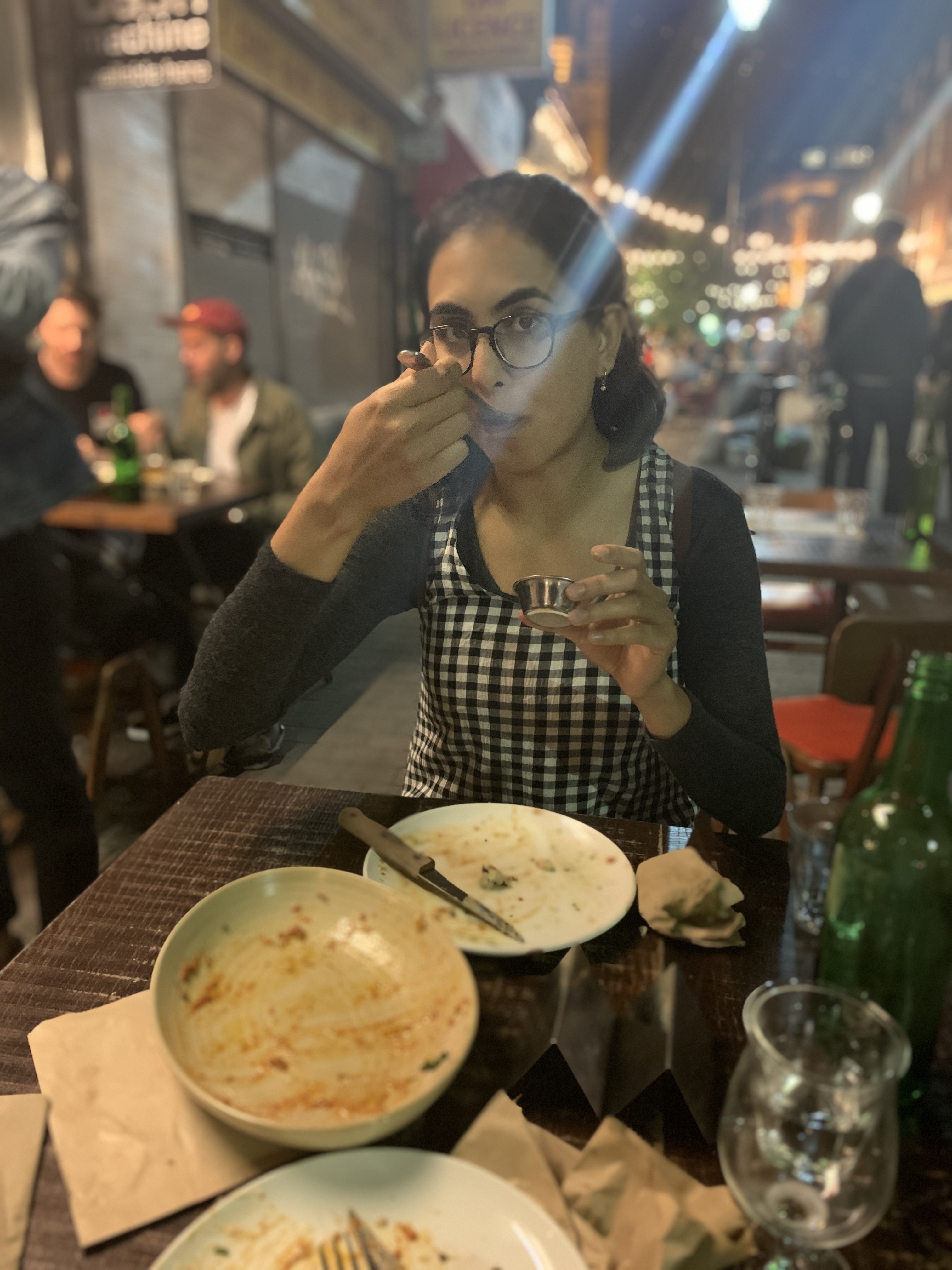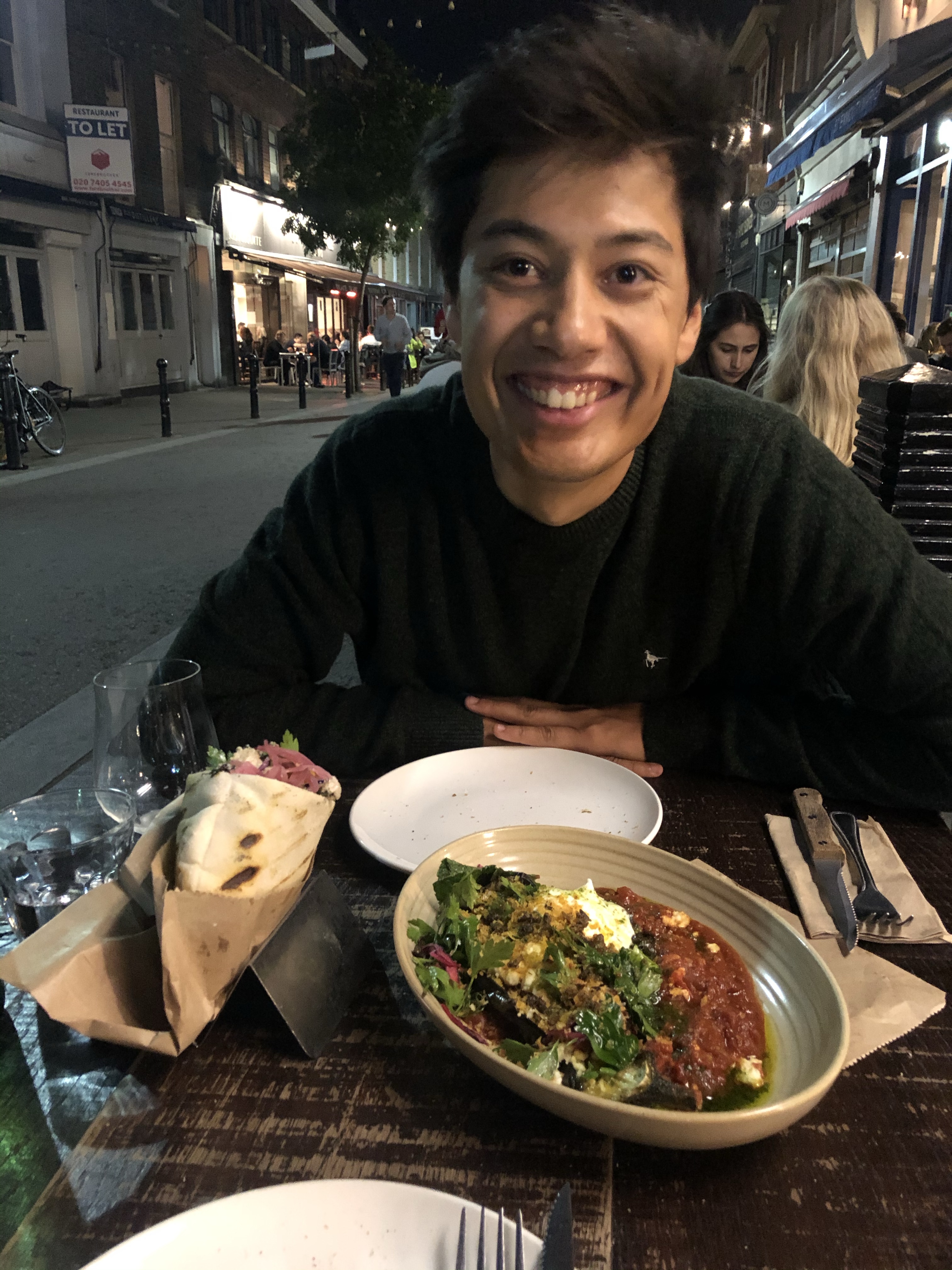 A was supposed to have a call with his Partner at QB but it got cancelled last minute. Instead, he wrote a really long stakeholder mapping and sent it over to them but as of yet (Monday morning now), no one has responded yet. L spent the afternoon finishing off work and realising how much she had to do that weekend but she hadn’t slept well and wasn’t feeling that enthusiastic. She stopped working at 7.30 and they tried to plan their evening. A wanted burgers so they googled lots of places and then L suggested Exmouth Market as a celebration for the presentation. They headed off, but it was super windy and A decided he wanted to get burgers from Waitrose whilst L decided she wanted to make it to EM because she knew A would prefer it. They headed off in separate directions until A gave in (ofc) and called L, despite his text message 3 minutes prior telling her that he wasn’t going to give in. They arrived in EM and immediately got a table at Berber & Q’s Shawarma Bar which is crazy hard to get into, and everyone that came after them was told it was a 40minute wait or no tables til the end of the evening. Feeling super lucky, they settled into a meal of babaghanoush (which is quite different to shakshuka, A learnt), cauli wrap with added tahini, and an aubergine dish. L spotted some friends from GS and they were planning to go for a drink with them but decided not to in the end. Over dinner A tried to convince L to go and work for a mayor in Columbia and they talked about moving countries and trying new opportunities. After dinner, they ambled back to 27G.
