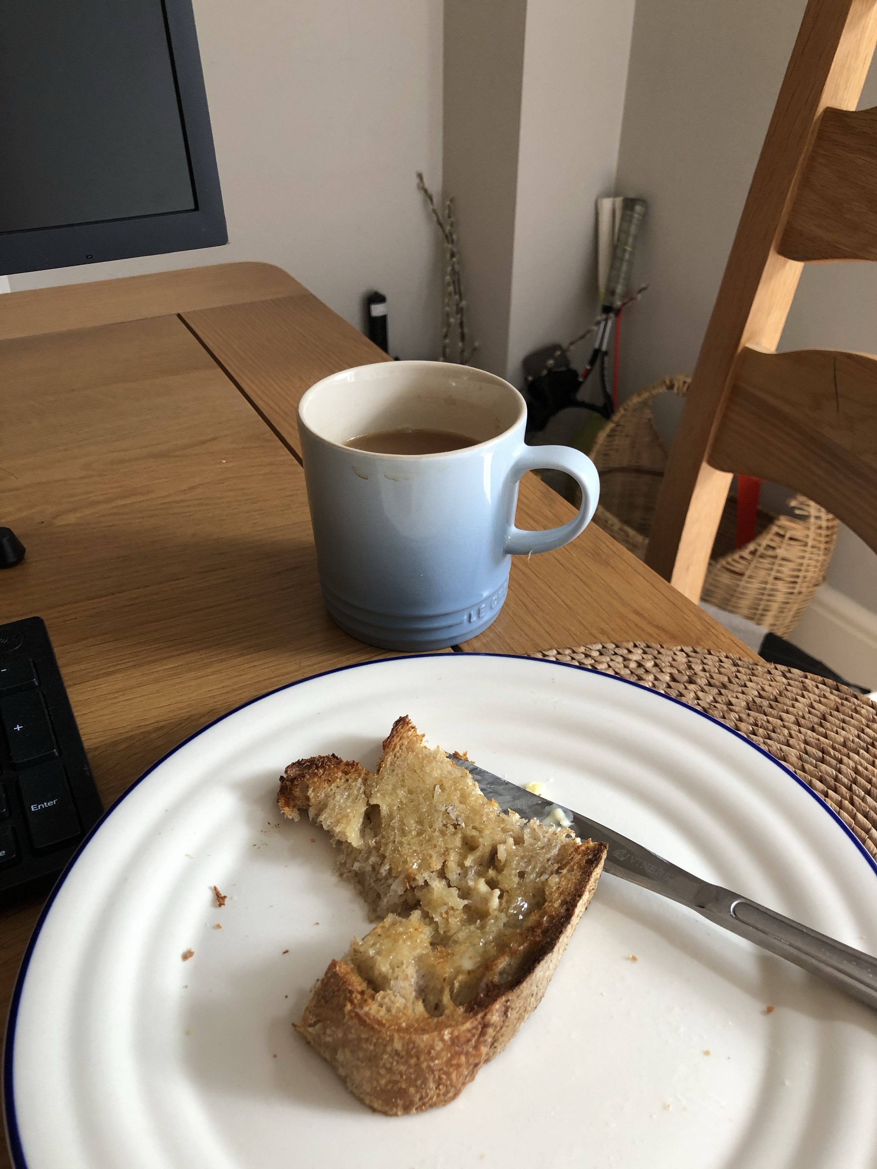 L made a lunch and had her fave sourdough bread from Margot that she’d picked up the day before. She then put her pyjamas on (at around 3pm) and read on the sofa for a while. She really did not feel like herself at all that day. A sat with her for a bit but then started packing away a few things. Then they cuddled on the sofa for another few hours and also looked at some houses. L had prepared dinner in advance (miso veggies) and they shoved it in the oven with some sea bass but then returned upstairs to chat and completely forgot about it, and found it 22 minutes after the timer had gone off (and the seabass was quite stuck to the foil). Nevertheless it was a nice meal upstairs in their usual spot and they chatted about past relationships and openness before heading up to bed. They watched some of Nadia’s cooking to relax before bed and learnt how to make a salmon poke bowl.