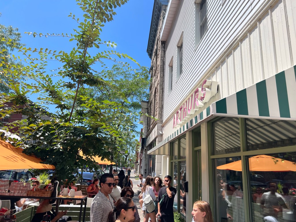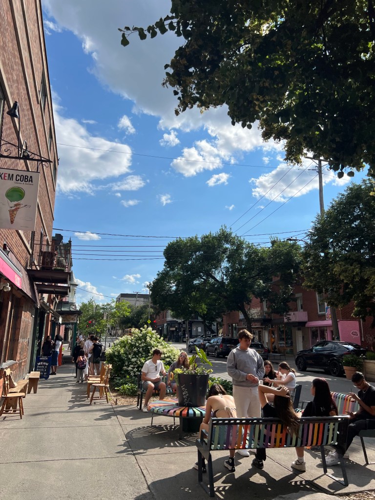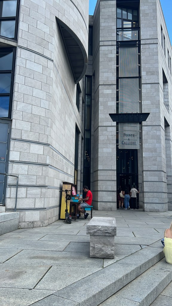 Leila woke up and wanted to make the most of the day. Alex made breakfast, an eggs breakfast and Leila went for coffee by the canal where they had oatly. Then she walked by the canal and through green parks to Arthur’s which is a middle easter n and Jewish brunch place. She waited 45 minutes to have brunch by herself. After the beautiful brunch she took the train to old Montreal, and saw the a set of climbing man gold-ish statues in an art gallery. it made her feel like she should ‘keep climbing’ and she called Alex so that they could agree to buy one. It took a while to agree with of the men she should buy. As she was walking through Old Montreal, she found someone playing Ludovico on piano just randomly in the park. She sat on the floor and cried whilst listening. Leila felt like it was fate that because she didn’t go to the concert that she stumbled upon a man who played the full album.