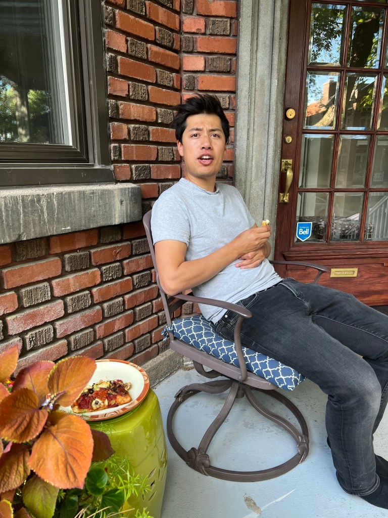 Leila went to Mile End and fairmount bagels and she really like the area and how green montreal was. then she went to Yoni falafel to buy dinner and then carried it an hour home on the subway and spilled it all over her dress. When she got back they tried the bagel, they actually liked the sesame the most. They had a date of the falafel dinner on the terrace listening to a bit of ludovico. They came back inside and Alex had a bath and they had their turmerics whilst trying to watch this is us. They couldn’t find it on the tv though so they finished their turmeric and went downstairs to watch it on the iPad. They cuddled up and went to sleep (Alex was quite a sweaty mess but less so).