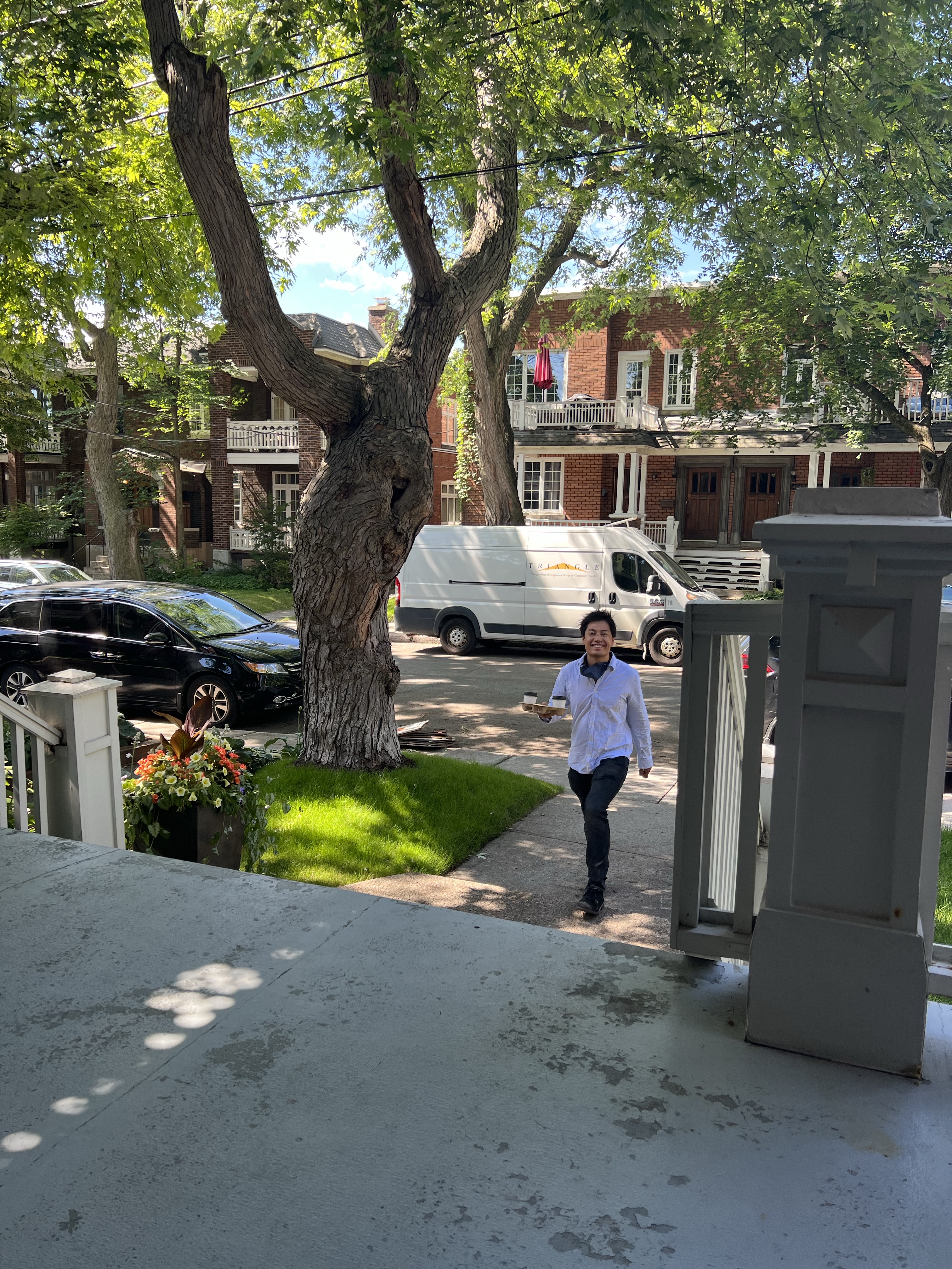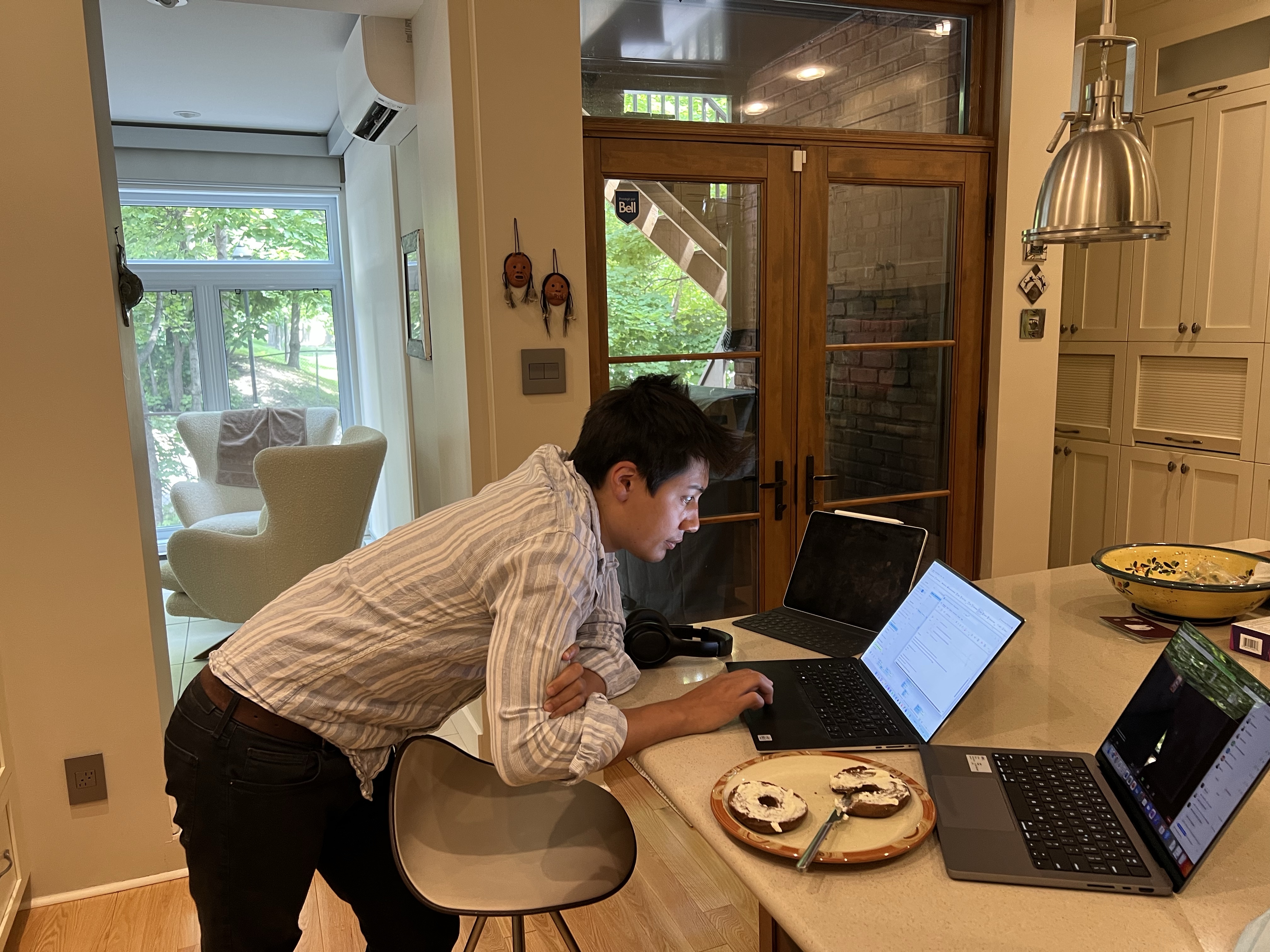 The next day, they went to get coffees in the morning but there was a nationwide Rogers outage which meant no cafes could take card payments so they found cash but the coffees were not great. Alex was better but not 100% so chose not to meet Jacomo IRL. Leila worked slowly again whilst Alex joined more onboarding calls.