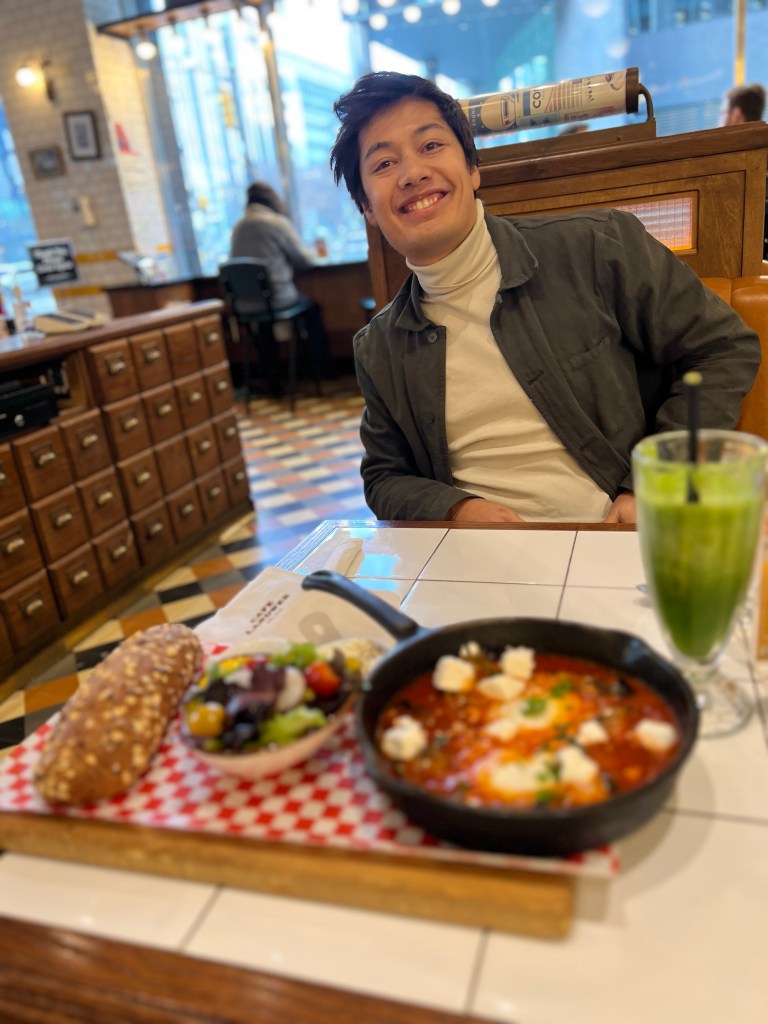 They had the day off for MLK day. L woke up at 3.40 am to go to her MRI in Mississauga, A kissed her goodbye. she spoke to her mum on the phone on the way and the mri was smooth (very quick) and she was back in bed by 6am. They then had a lie in and woke up feeling quite good considering lack of sleep. They had no plans for the day but decided to go to a restaurant which is usually very busy but because it was Monday, it was fine. They ended up going to Cafe Landwer for a middle eastern brunch. A had a massive vegan shawarma which was great and L had a shakshuka. They loved the food and it was cheap. Then they decided to go to the beaches and walk because it was sunny. They took the tram and then walked along the beach trying to get as much sun as possible. They started listening to a podcast on Anduril whilst walking and L learnt so much about defence and A’s views. They wanted to go to Avling but it was closed so they ended up coming back and Alex made his Ramen – it was super good. The day ended with TeTu