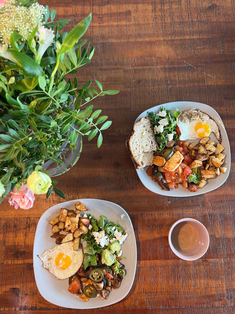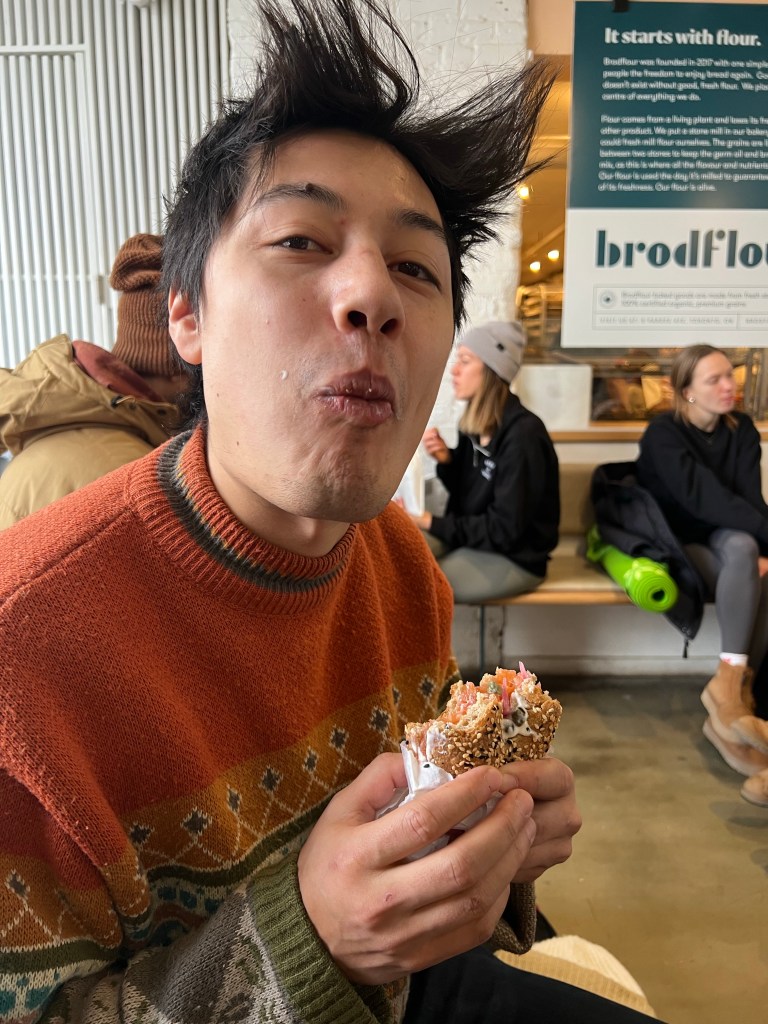 Today they went to Brodfour for the Salmon Bagel, went swimming once more and now they’re sitting in a new cafe just north of Oslington. It’s super cute