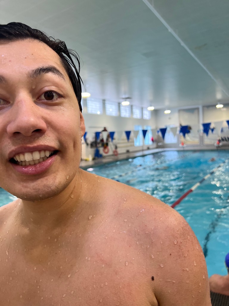 Saturday morning A messaged a whole lot of friends to try and catch up with them. He spoke to his family and Masha. The main event, however, was the swimming pool!!!! L had been going to physio, chiro and accupuncture weekly for the last month and was finally cleared for exercise. Despite not enjoying swimming, she was too excited to start exercise again and found the nearest public pool to them in Trinity bell woods. It was at a community centre, they paid $4.50 each to enter. Very clean. Lots of people playing table tennis. The pool was very calming, classical music playing, everyone in hats and googles (apart from a & l ). L went in the slow lane, A in medium and it was the first time L’s back hadn’t hurt in a long time. They did 30 mins slow swimming and it felt amazing. L felt so human with everyone just quietly swimming looking the same in hat and googles. They came out and the sun was shining and L felt 10/10 (apart from her hair being very chlorine-y). They immediately bought googles and a swimming cap for the next week!