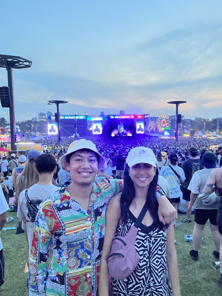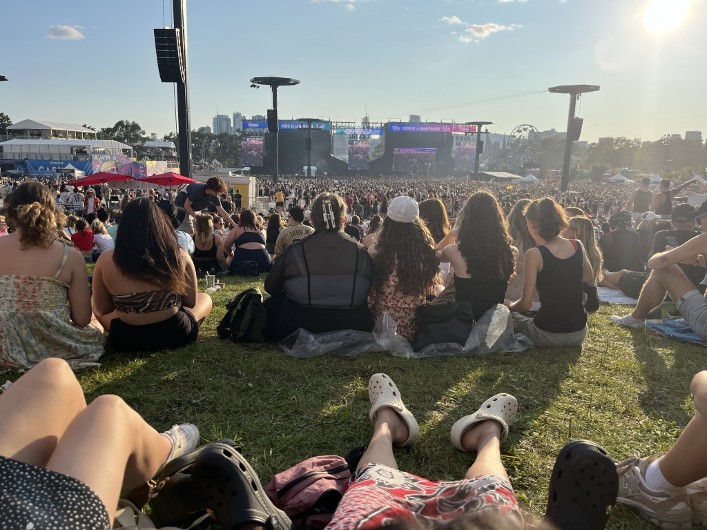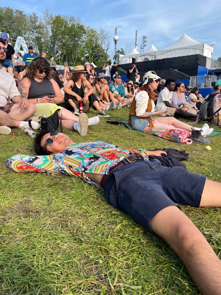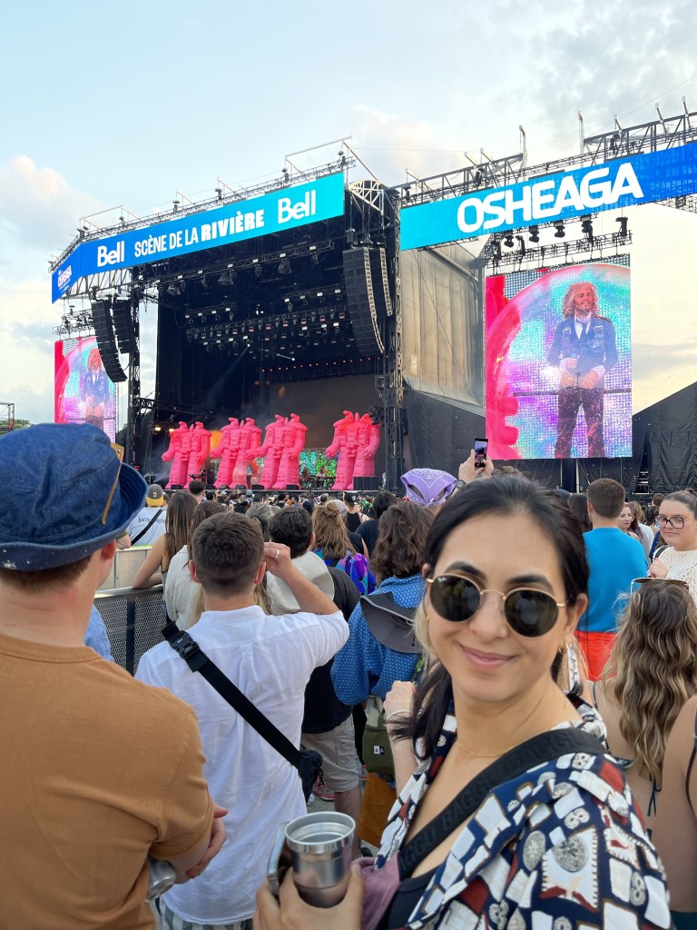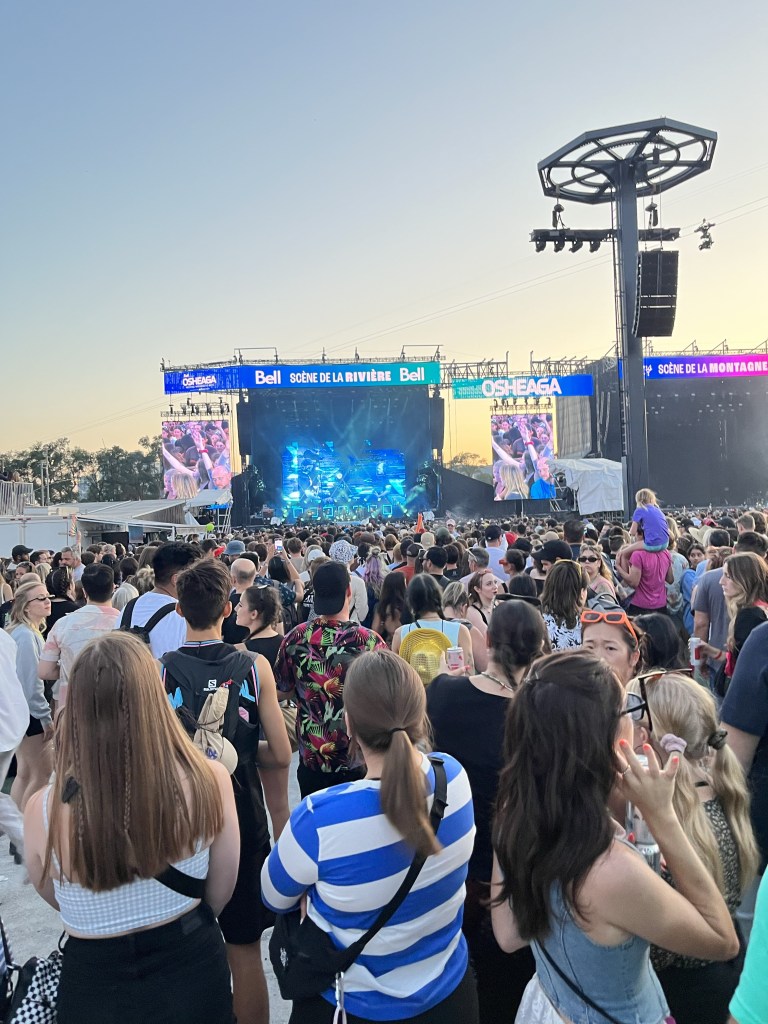 They headed to the airport and got a bagel bomb on the way, it was super easy with Porter flying to Montreal. We got there and immediately went to buy crocs. Alex was sad about how stressful the mall was. They had a nice brunch and then headed for their first day in osheaga. Alex was in a bit of a rush to see Ali’s fave band cause they missed the ferry but a ll turned out well. They stood for Rufus de Sol which was cool but it was a bit hectic.