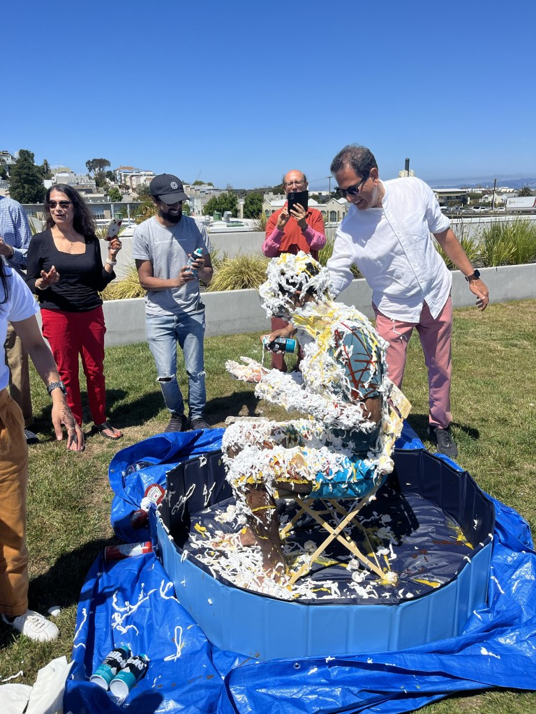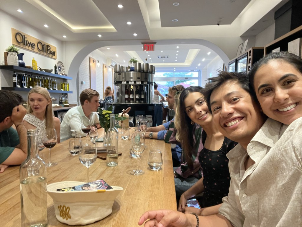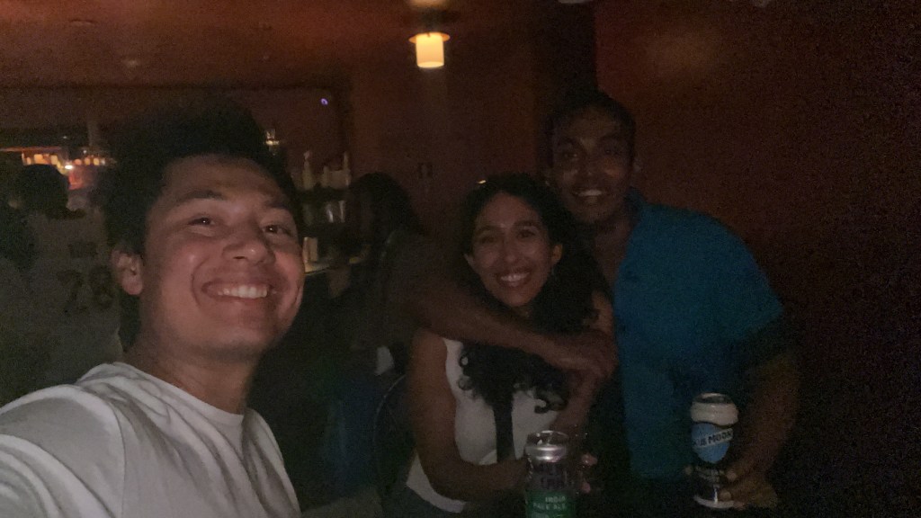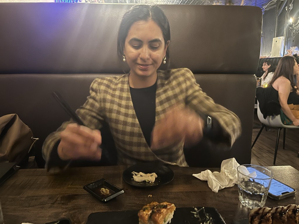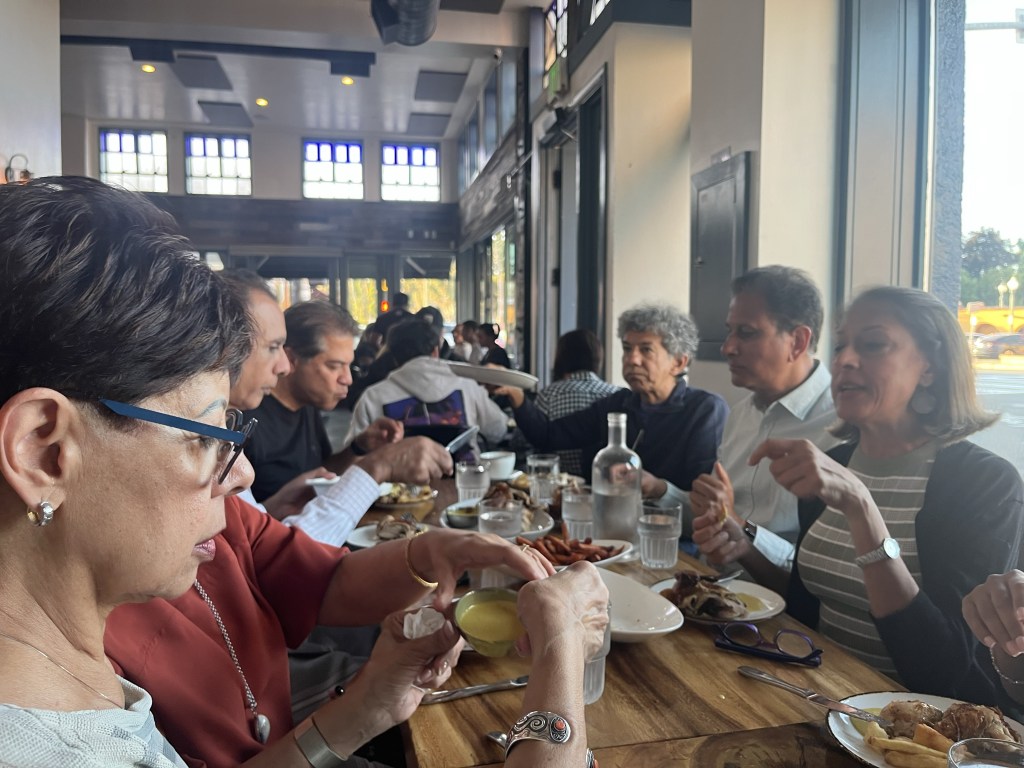 They had 1-day at home before they met Leila’s mum at the airport and headed to San Francisco. They met Leila’s dad at the airport and rented a car and went immediately to In and Out burger where the veggie option was bad the chips were even worse but it was very cheap. They next day L’s entire family were in the gym really early but L and her parents then decided to go get groceries from Trader Joes and she showed them around which she loved. Then Leila and Liyana went to Barre together which was L’s first barre class since the injury and she loved it. A was working in a cafe nearby and came to meet us. He just found out he got the fellowship at No10!!!!!!!!! They then got ready for the Pithi and went to Areef’s roof to have Chick fil A and Pizza. It was super sunny and chilled, they got Mehndhi and chatted to the whole family. We then threw mustard, eggs etc. on Areef and it was fun. Noureen had her mendhi right after and the girls side was much more organised and pretty but ours was really fun. In the eve we went to a Peruvian restaurant with Auntie Navin, Auntie Munira and Nuraiyahs parents and ate LOADS of food like ceviche that we shared with Iman and Liyana.
