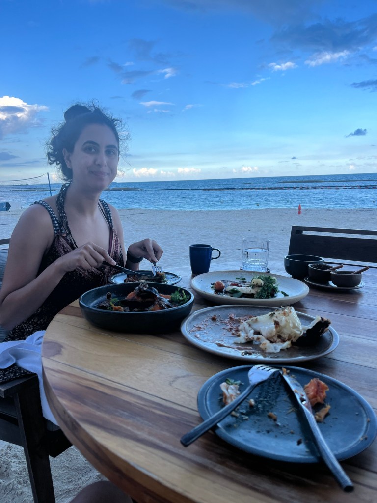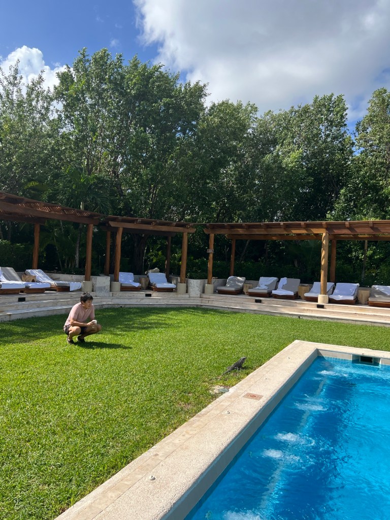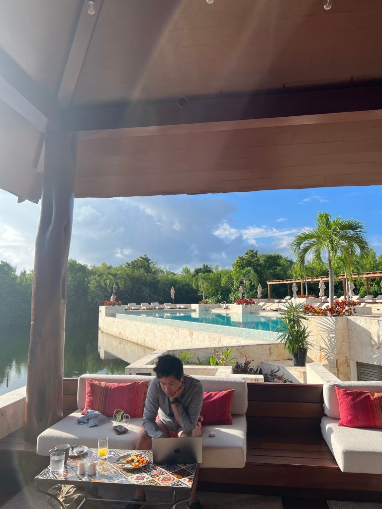 They arrived in heaven aka Fairmont Mayakoba and decided to pay for an upgrade to the casita because it was cheap and the room was beaut. They had a few days of super chill, enjoying the new beach club area and reading lots. A spent lots of time by the pool with iguanas. L had a sinus infection but she still felt sooo lucky to be in Mexico. A did a day of work for McKinsey calibration / reviews but he sat in the breakfast area all day and really enjoyed doing it and writing good feedback for his DGLs. They ate big breakfasts every day and slept lots. They watched Hunger the Thai movie in bed. They loved Fuego beach club food and the cocktail bar at the Rosewood where there was a lovely band.