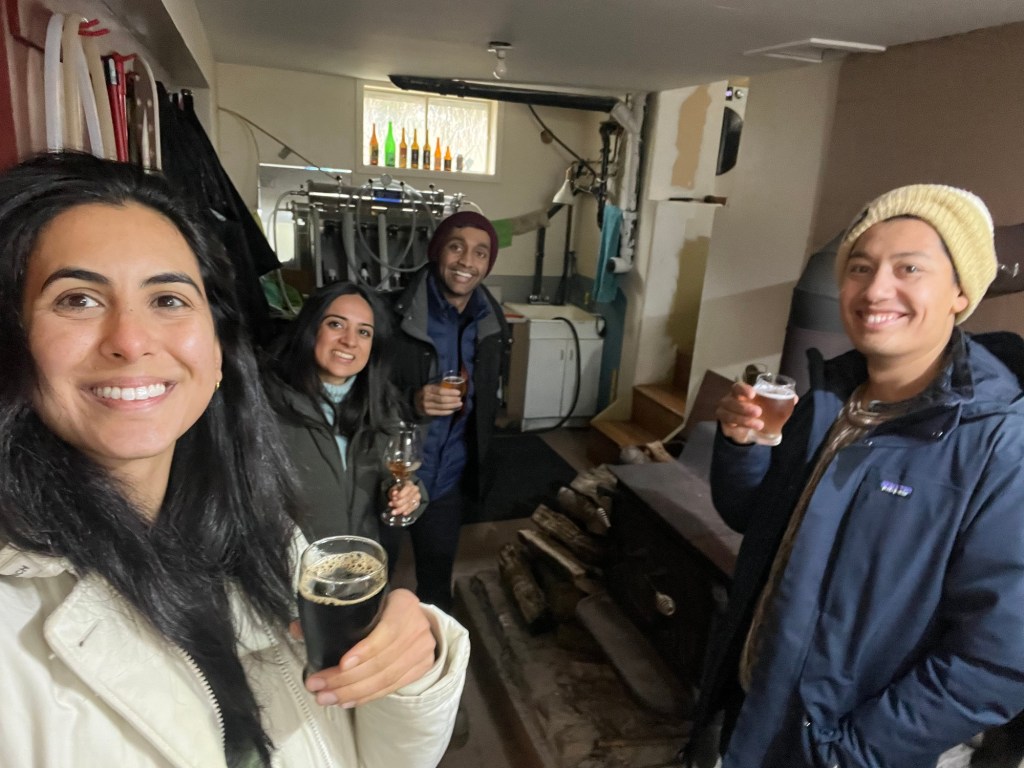 Avi and Ruchi came to Toronto! They went to PEC and stayed in the Picton hotel called the Standard. They gave us warm cookies and champagne on arrival and it was lovely. L was very happy. A bought llama wool for his grandma and they went to strange brew which was a brewery in a mans house and stood by his fire and chatted whilst drinking beer, then went to a nice vineyard where they played the National. They also got tacos from Wellington. In the eve they went to Bocado for dinner. The next day they had coffee and went to Sandbanks for a long walk, it was great, then to a Xmas market and a brewery for pizza and beers. THe drive home was manic because the weather was so bad and L was quite scared as the driver, but they made it. They listened to Bear Grylls on the way home on a podcast. They went to Grey gardens with Ruchi for her bday the next week and set up a little party at home with balloons and cookies on her 30th.